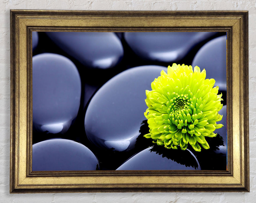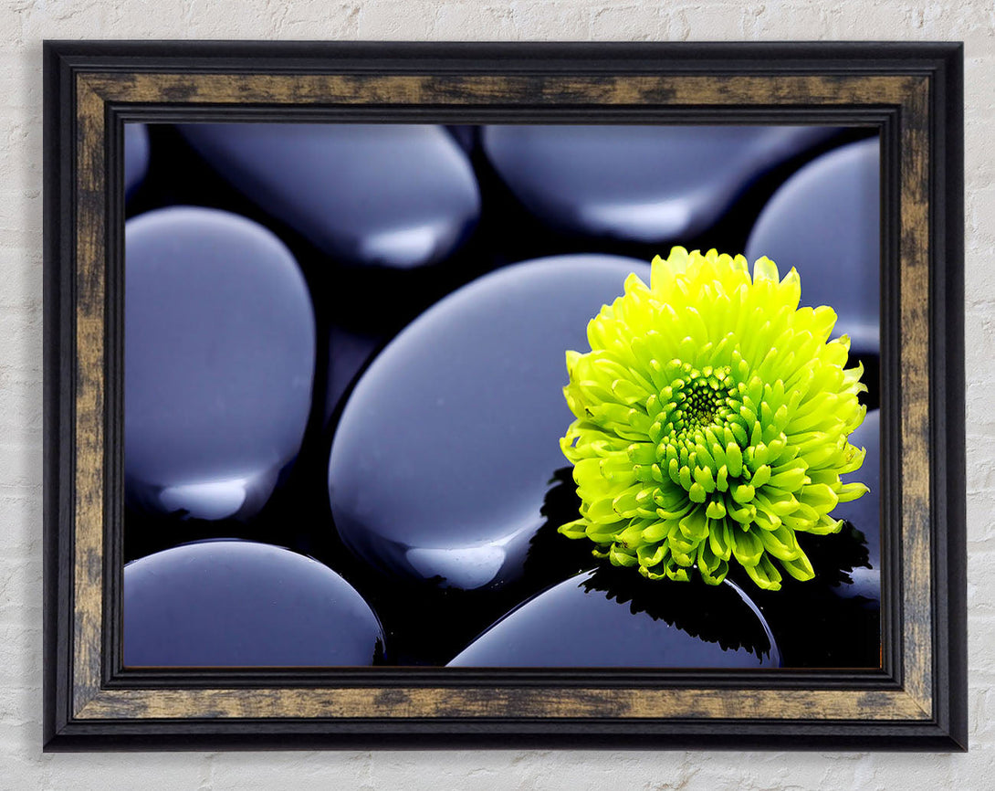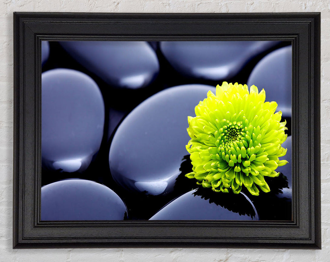 Black Zen Stones And A Yellow Mum Framed Print
