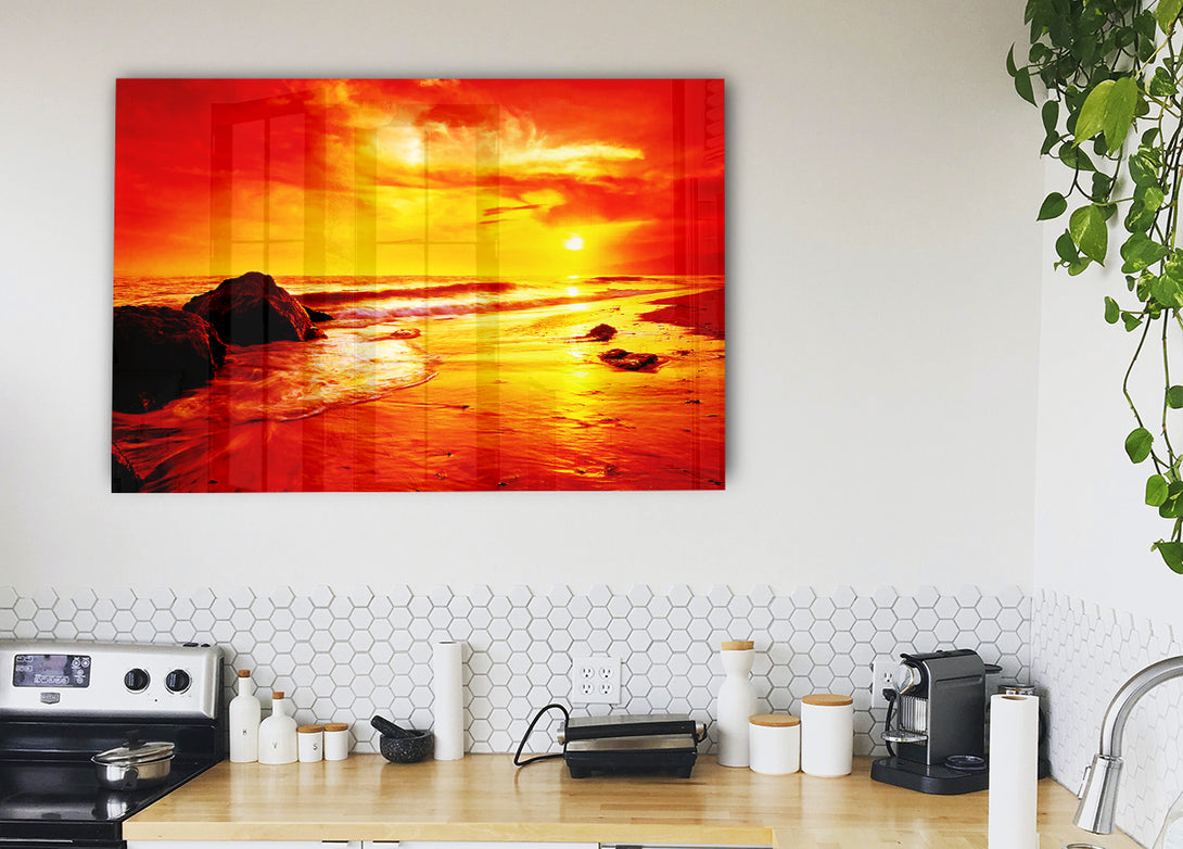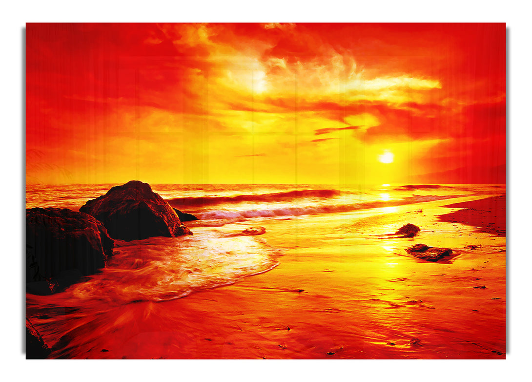 Blazing Orange Seas acrylic print, UV printed onto 5mm thick acrylic glass. Comes with everything you need to hang on your wall.