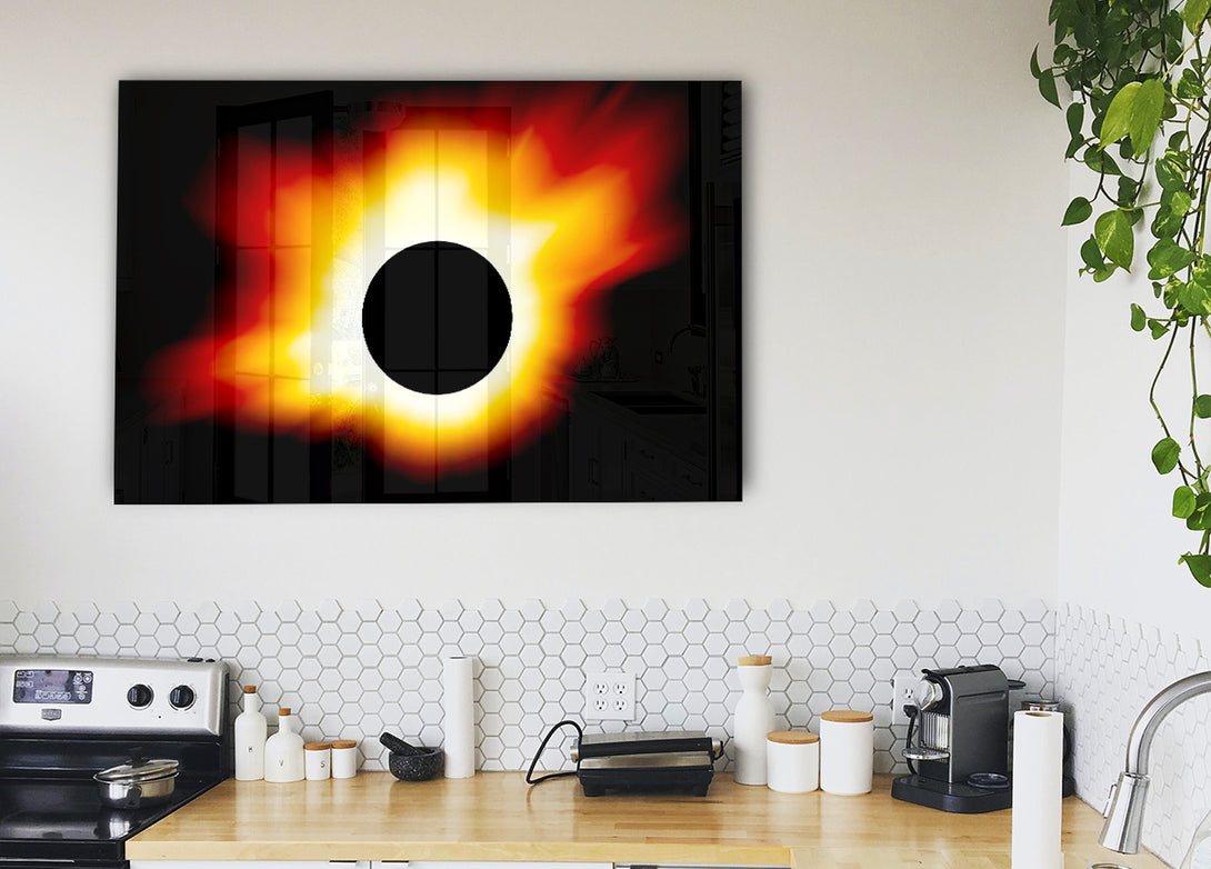 Blazing Sun Behind The Eclipse acrylic print, UV printed onto 5mm thick acrylic glass. Comes with everything you need to hang on your wall.