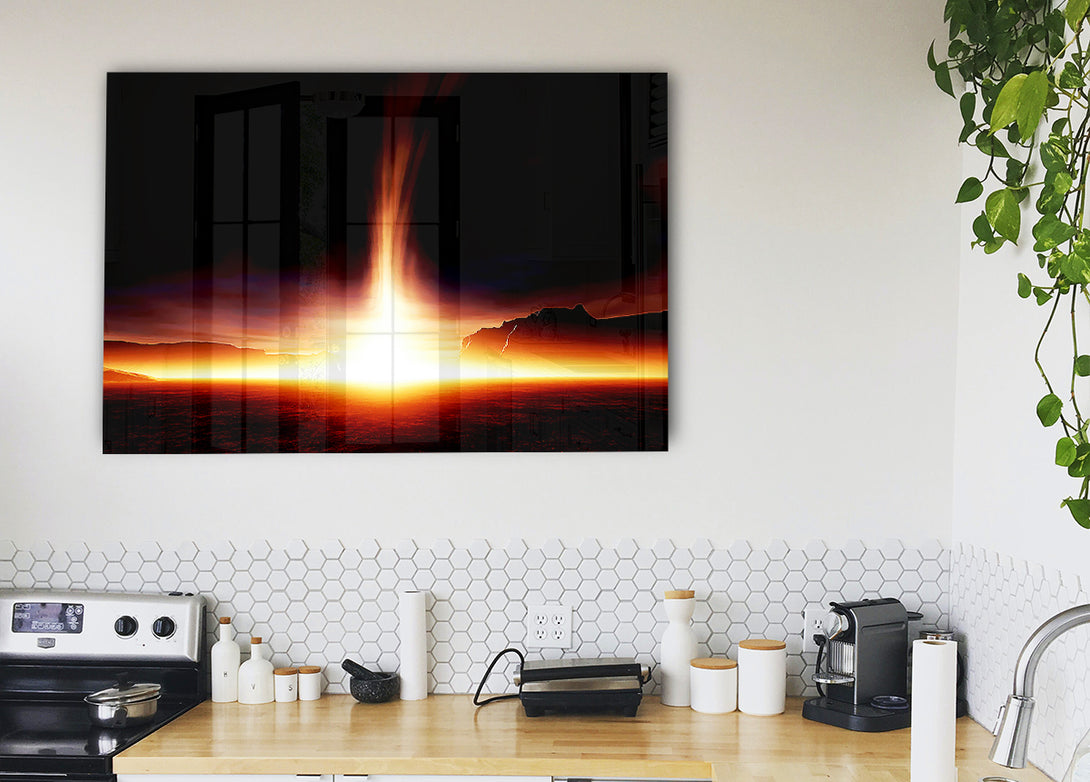 Blazing Sun Star acrylic print, UV printed onto 5mm thick acrylic glass. Comes with everything you need to hang on your wall.