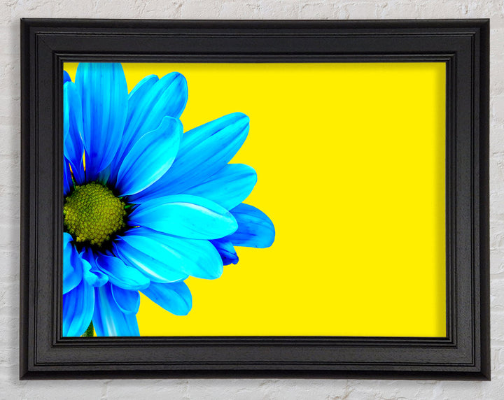 Brighten up any room with the Blue Daisy On Yellow Framed Print. This stunning piece of framed art captures a vibrant blue daisy set against a cheerful yellow background, adding a splash of color to your home. Available in six different sizes, from small to oversized, you can find the perfect fit for any space. The print is ready to hang, making it easy to add a touch of elegance to your wall immediately. Each item is handmade in the United Kingdom, ensuring top quality and attention to detail. Choose from a variety of frame colors to match your decor. Enjoy the beauty and craftsmanship of this eye-catching artwork.