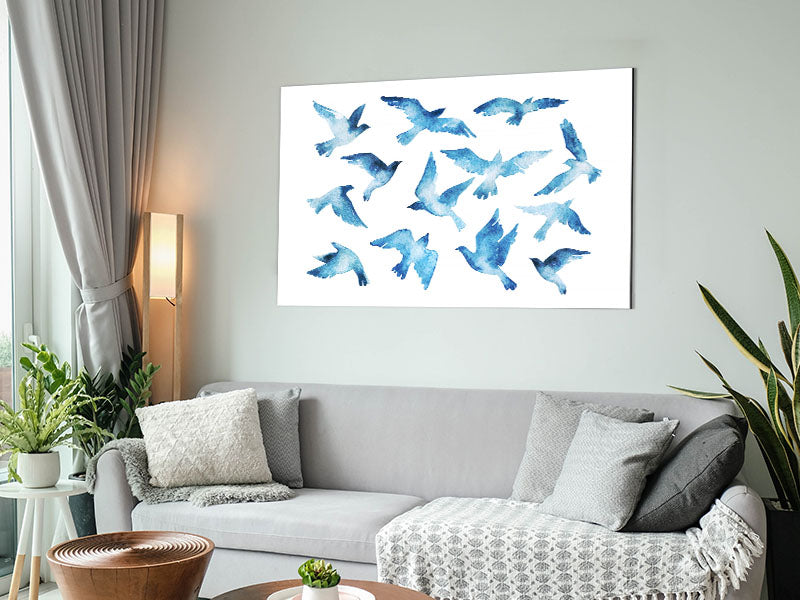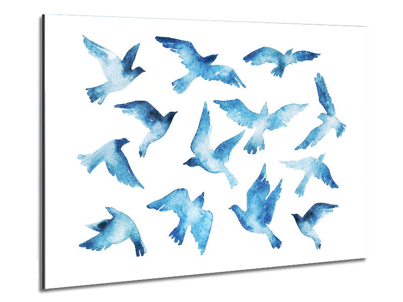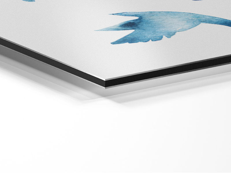 Blue Doves Printed on brushed aluminium dibond. A modern way to display art and easy to maintain.