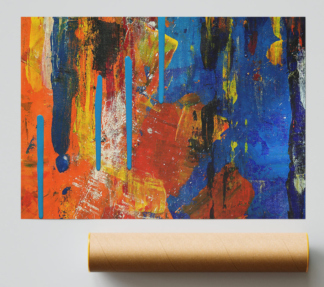 Our Blue Drips On Orange Poster is printed 260 GSM premium lustre paper that offers vibrant colours and exceptional detail.