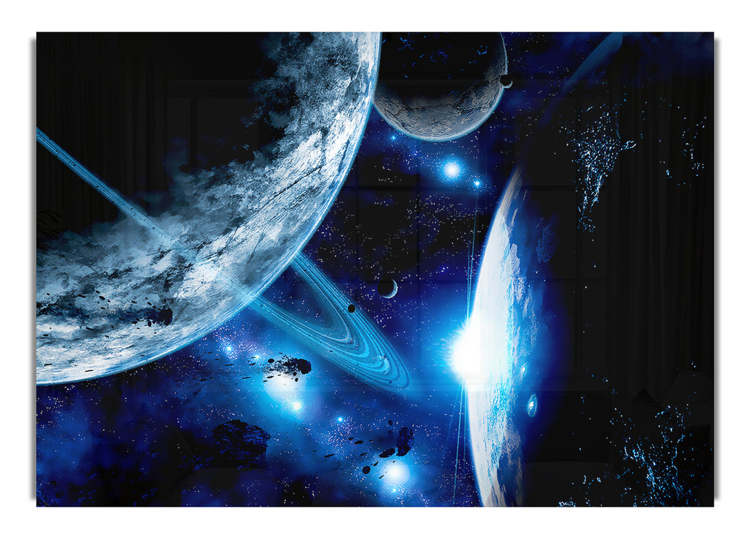 Blue Galaxy Rays acrylic print, UV printed onto 5mm thick acrylic glass. Comes with everything you need to hang on your wall.