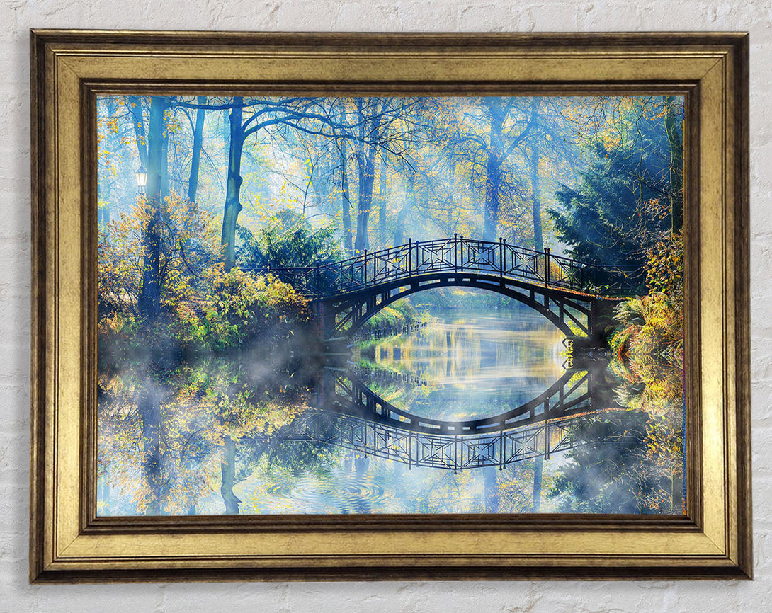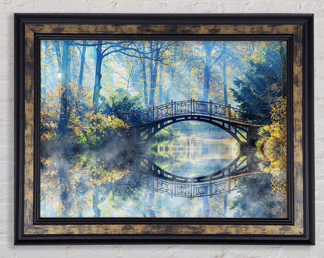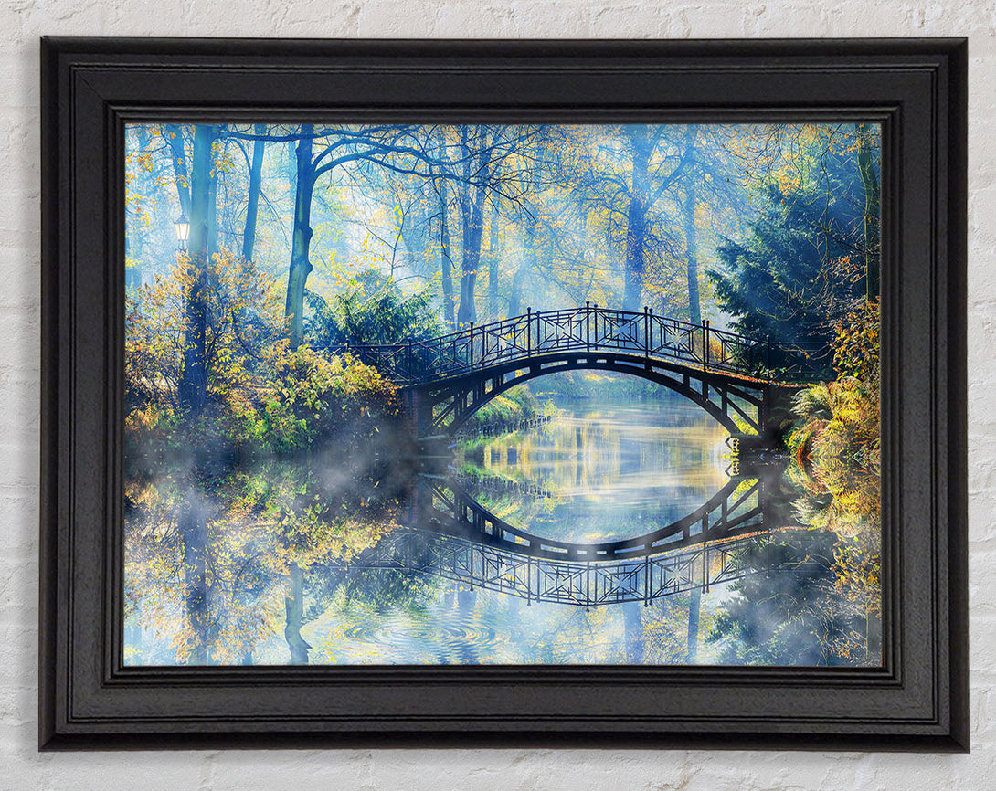 Blue hue bridge on lake Framed Print