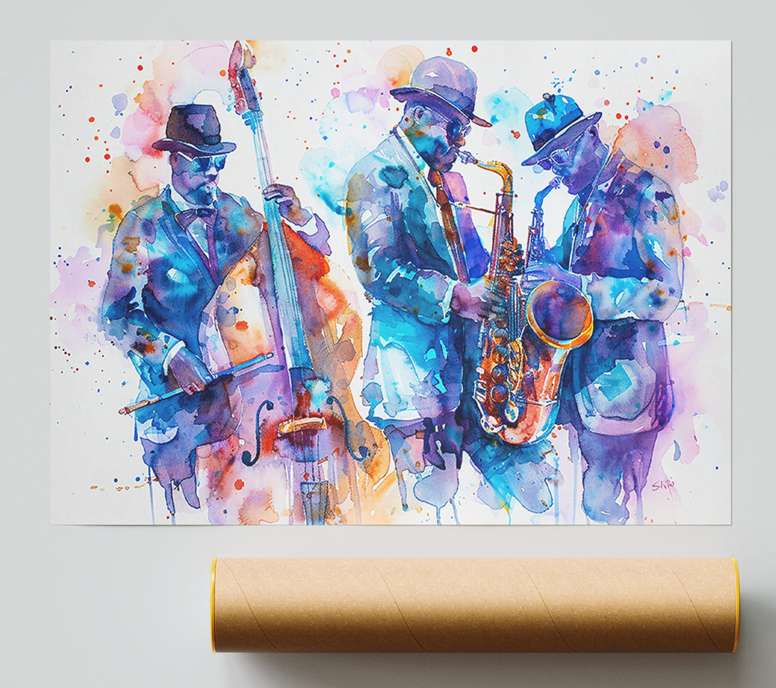 Our Blue Jazz Trio Poster is printed 260 GSM premium lustre paper that offers vibrant colours and exceptional detail.