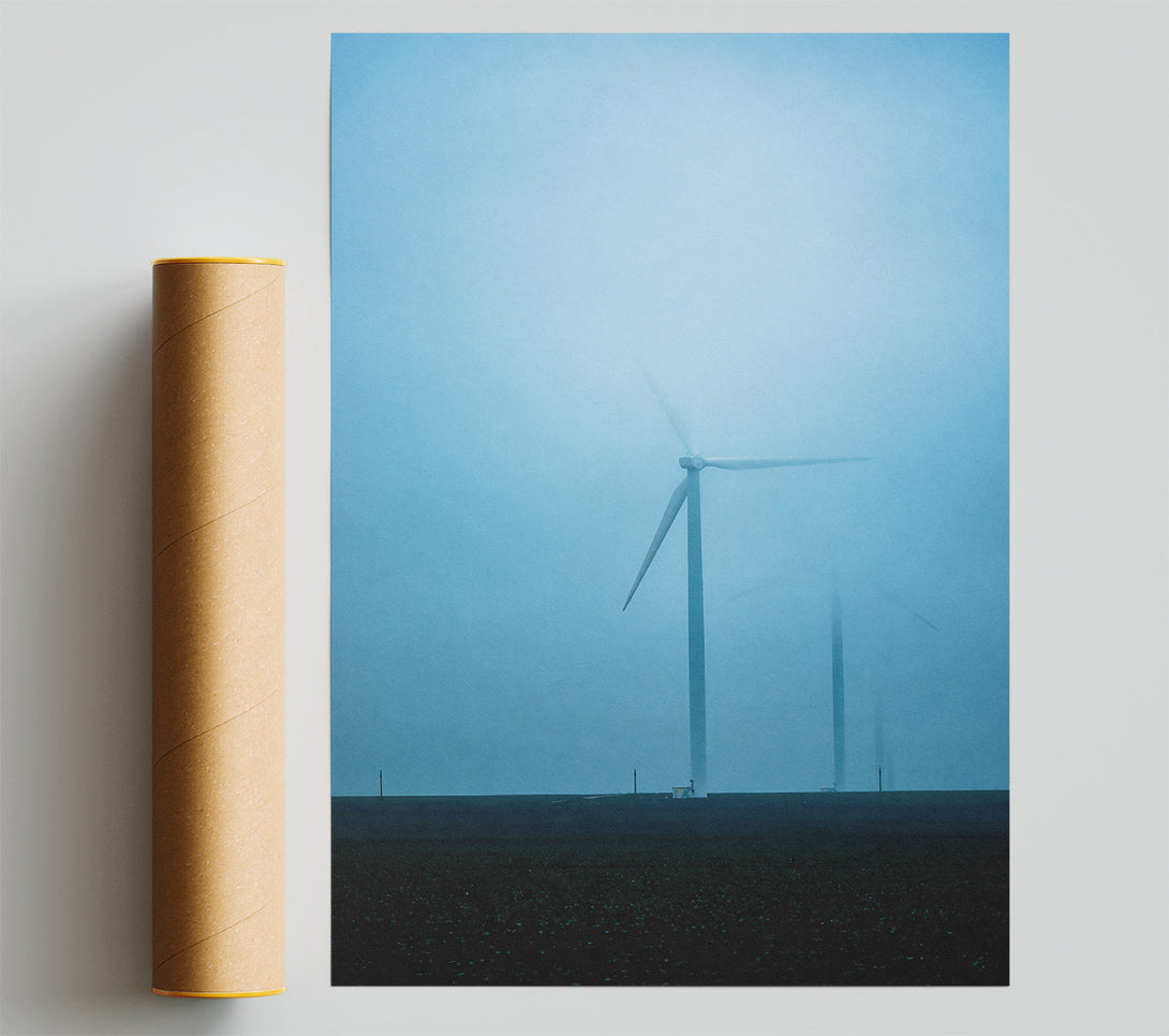 Our Blue Mist Turbine Field Poster is printed 260 GSM premium lustre paper that offers vibrant colours and exceptional detail.