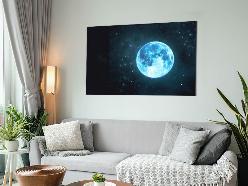 Blue Moon Printed on brushed aluminium dibond. A modern way to display art and easy to maintain.