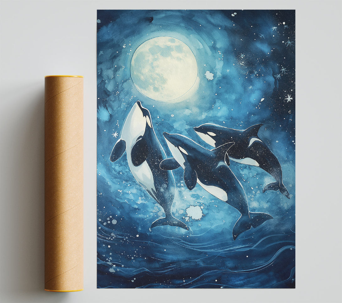 Our Blue Moon Orcas Poster is printed 260 GSM premium lustre paper that offers vibrant colours and exceptional detail.