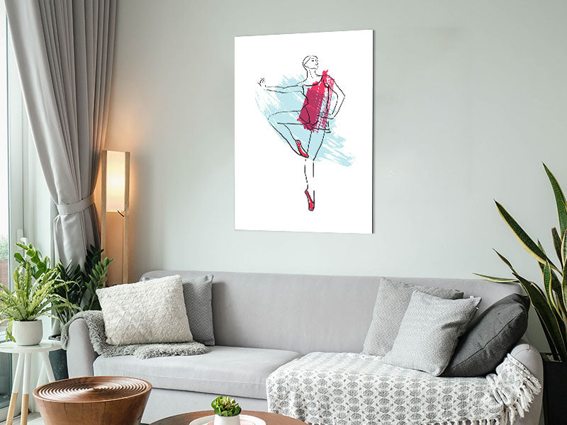 Blue Pink Ballerina 2 Printed on brushed aluminium dibond. A modern way to display art and easy to maintain.