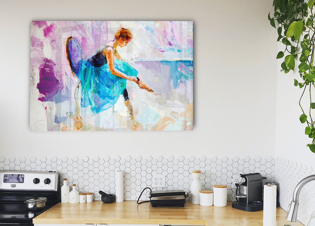 Blue Pink Ballerina 4 acrylic print, UV printed onto 5mm thick acrylic glass. Comes with everything you need to hang on your wall.