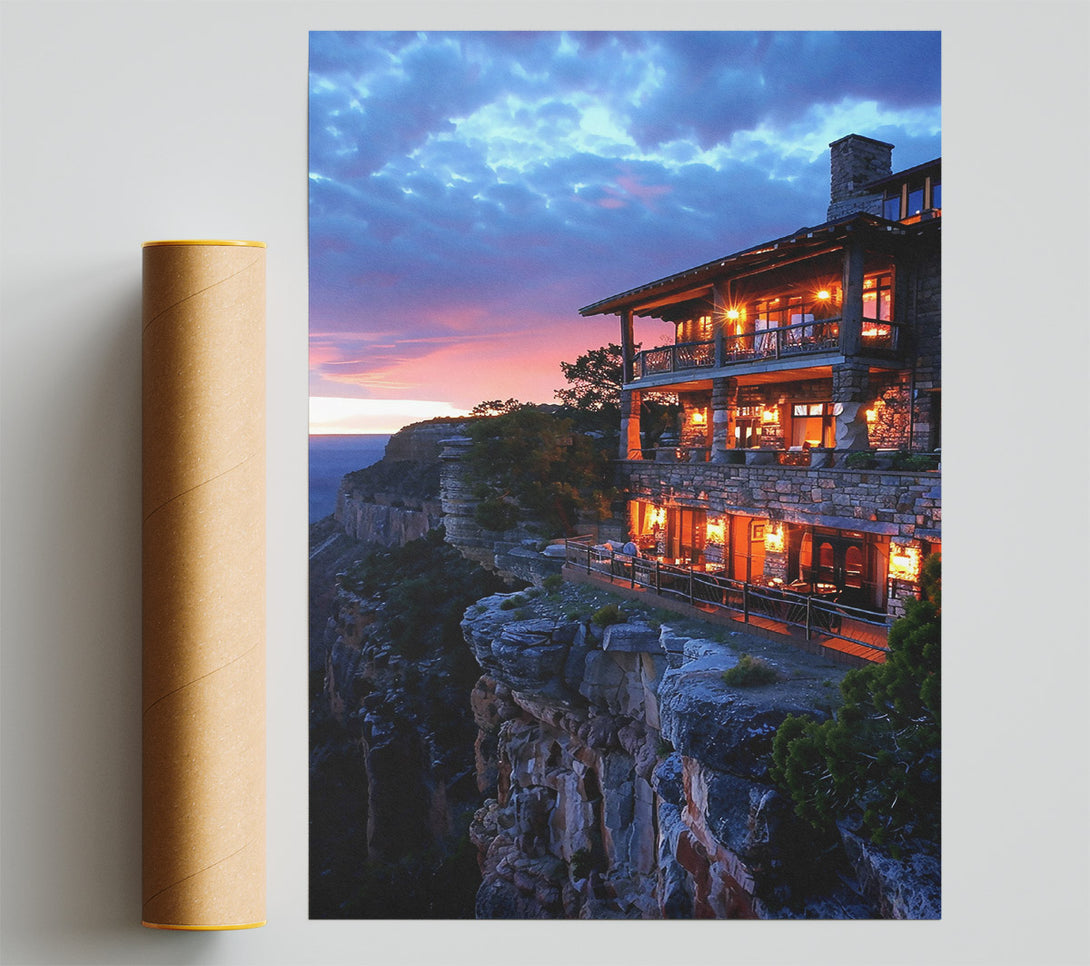 Our Blue Sky Cliffside Cabin Poster is printed 260 GSM premium lustre paper that offers vibrant colours and exceptional detail.