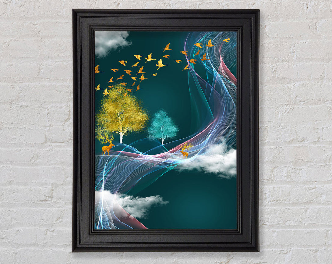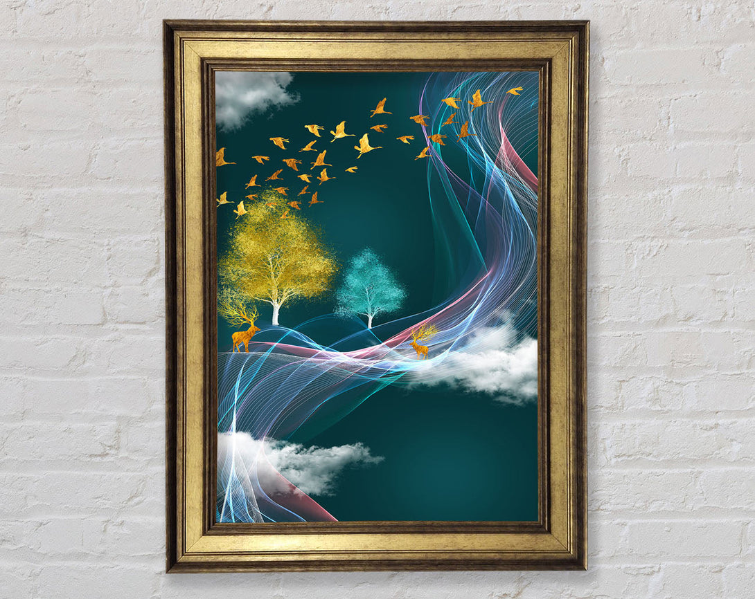 Blue Sky Gold Birds Framed Print