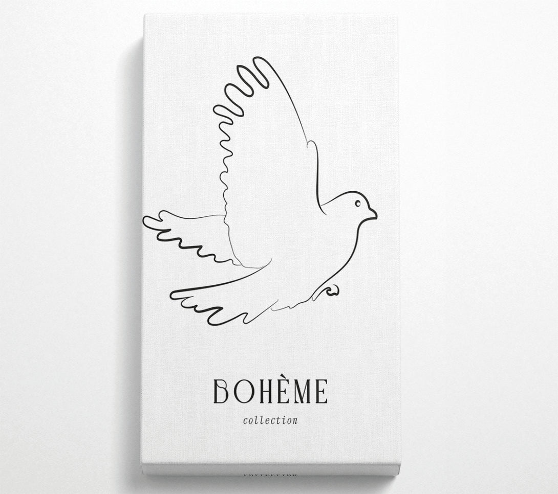 Boheme Dove wide canvas, printed on coated polyester canvas. Mounted on to a 44mm box frame, ready to hang.