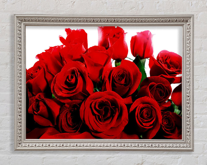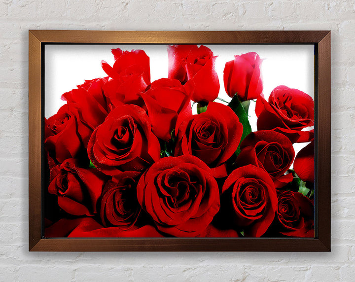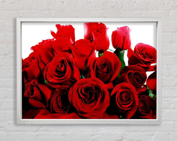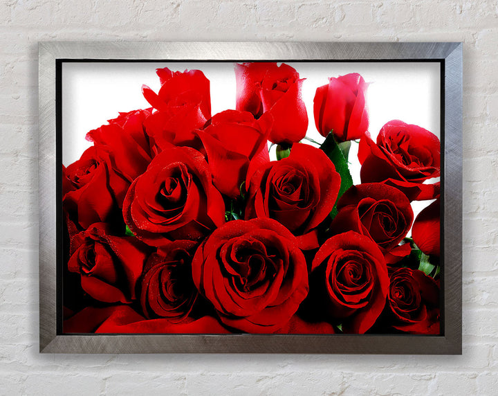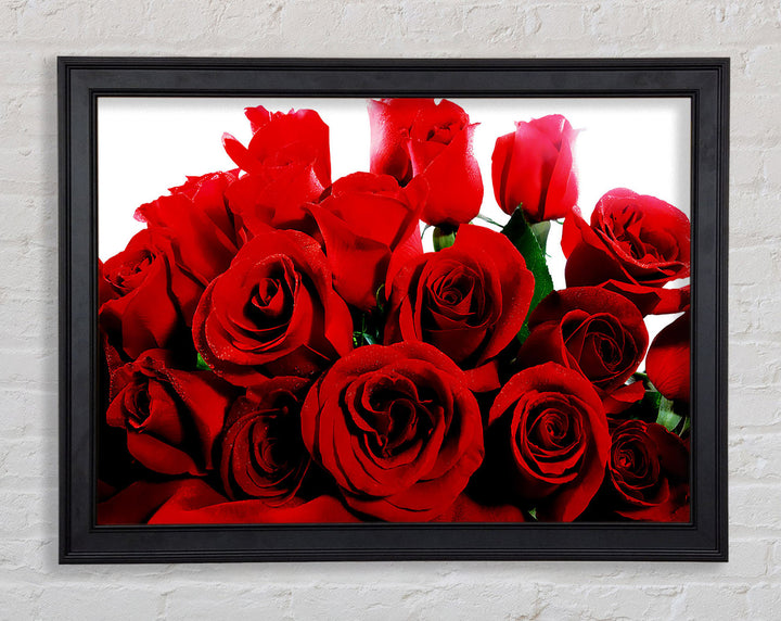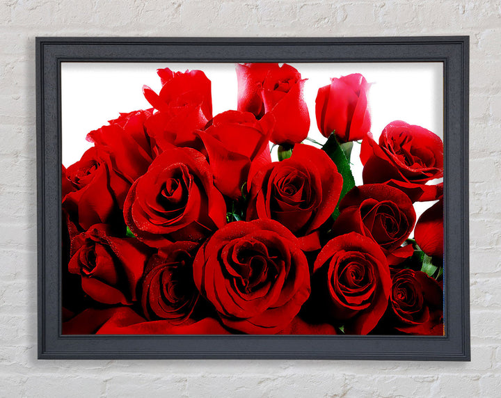 Add a touch of elegance to your home with our Bouquet Of Red Roses Framed Print. This beautiful framed art captures the timeless beauty of red roses, making it a perfect addition to any room. Available in six sizes, from small to oversized, this print can fit any space, whether it's cozy or grand. It comes in a variety of colors to match your decor and is ready to hang right out of the box. Each piece is handmade in the United Kingdom, ensuring top-notch quality and craftsmanship. Transform your living space with this stunning piece that combines art and nature in a frame.