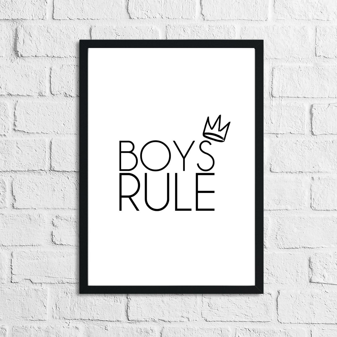 Boys Rule Crown Children's Bedroom Room Wall Decor Print
