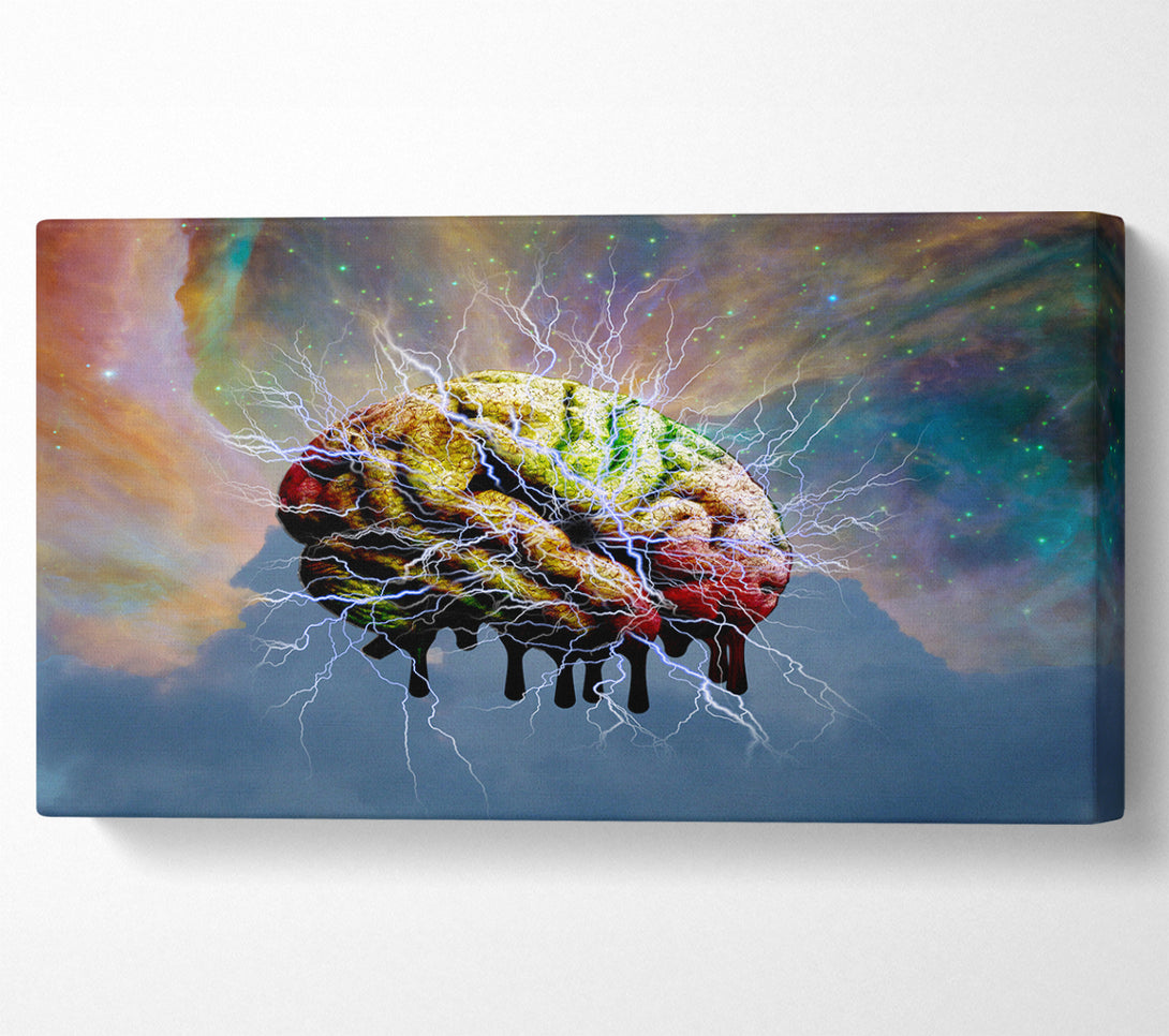 Brain Electricity wide canvas, printed on coated polyester canvas. Mounted on to a 44mm box frame, ready to hang.