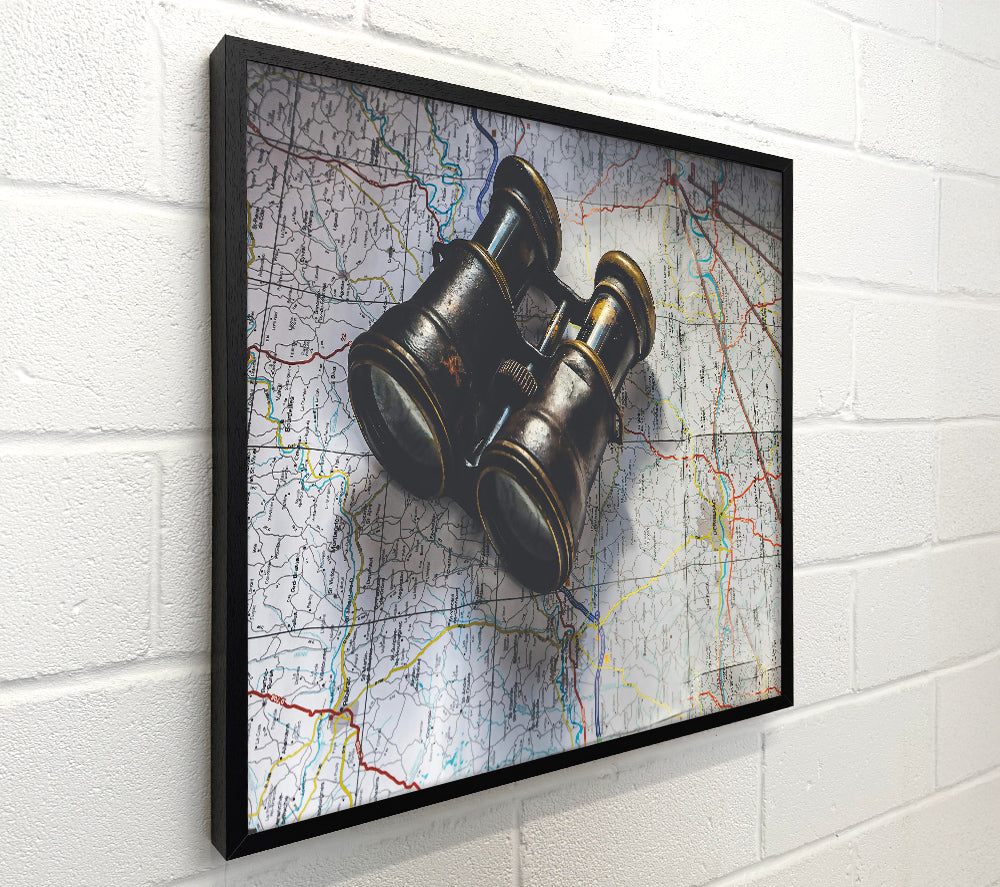Brass Binoculars On Map