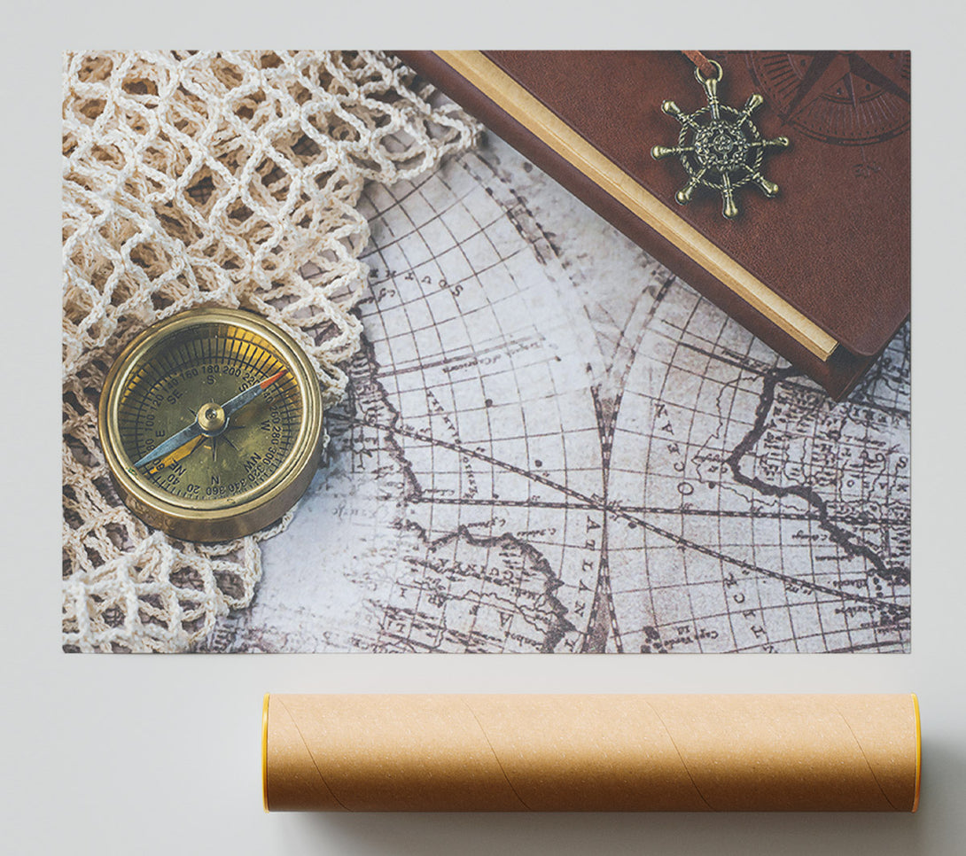 Our Brass Compass And Map Poster is printed 260 GSM premium lustre paper that offers vibrant colours and exceptional detail.