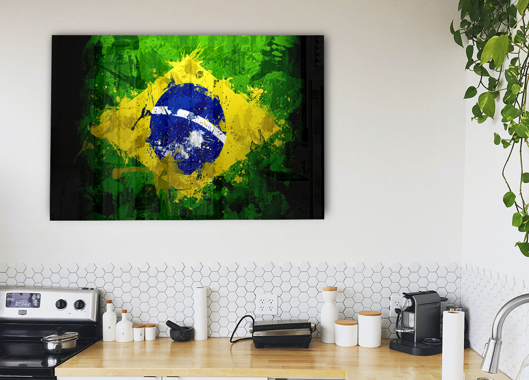 Brazilian Flag Grunge acrylic print, UV printed onto 5mm thick acrylic glass. Comes with everything you need to hang on your wall.