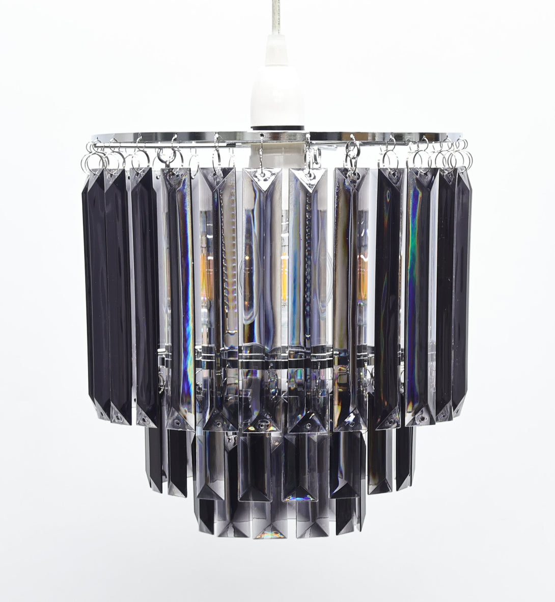 Add a touch of luxury to your lighting with the Bria Smoked Easy-Fit Pendant, exclusive to Pagazzi. This elegant pendant features a striking 3-tier shade made from cascading smoked acrylic prisms, creating a glamorous, light-reflecting statement in any space.