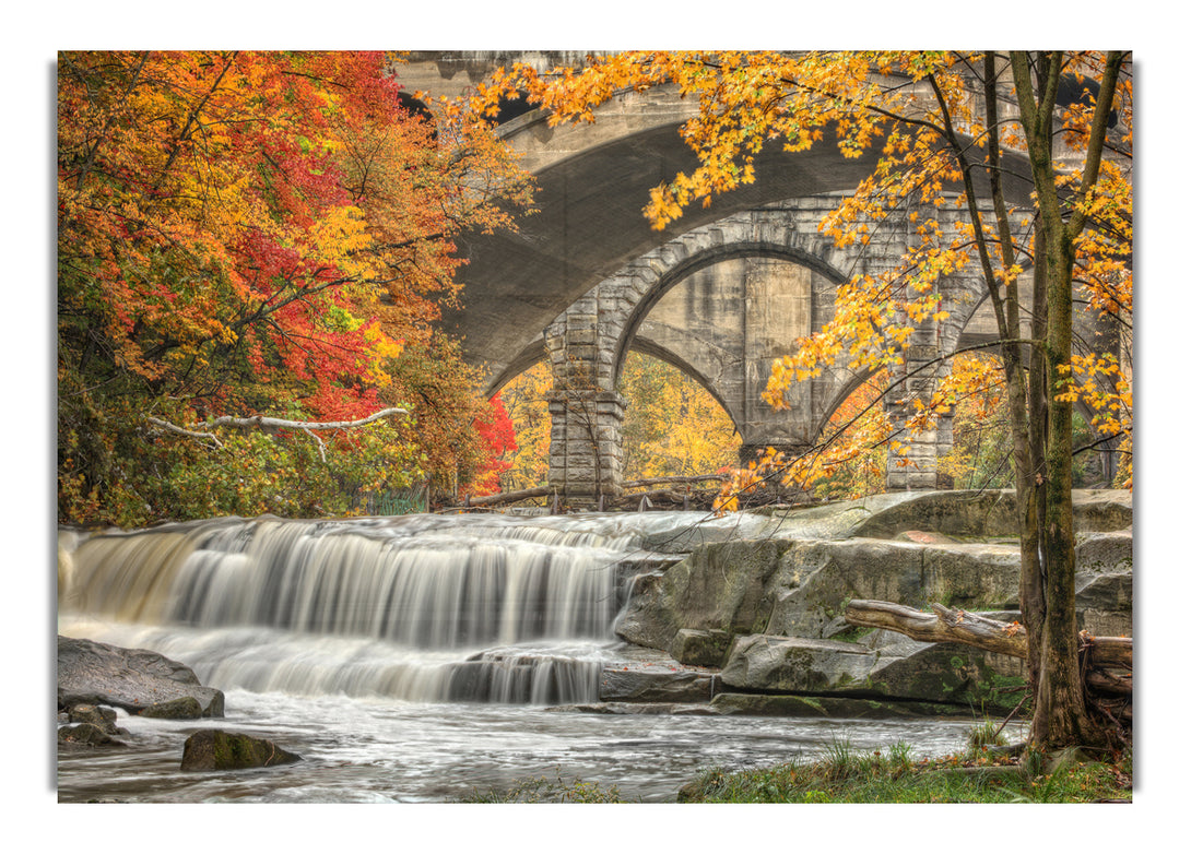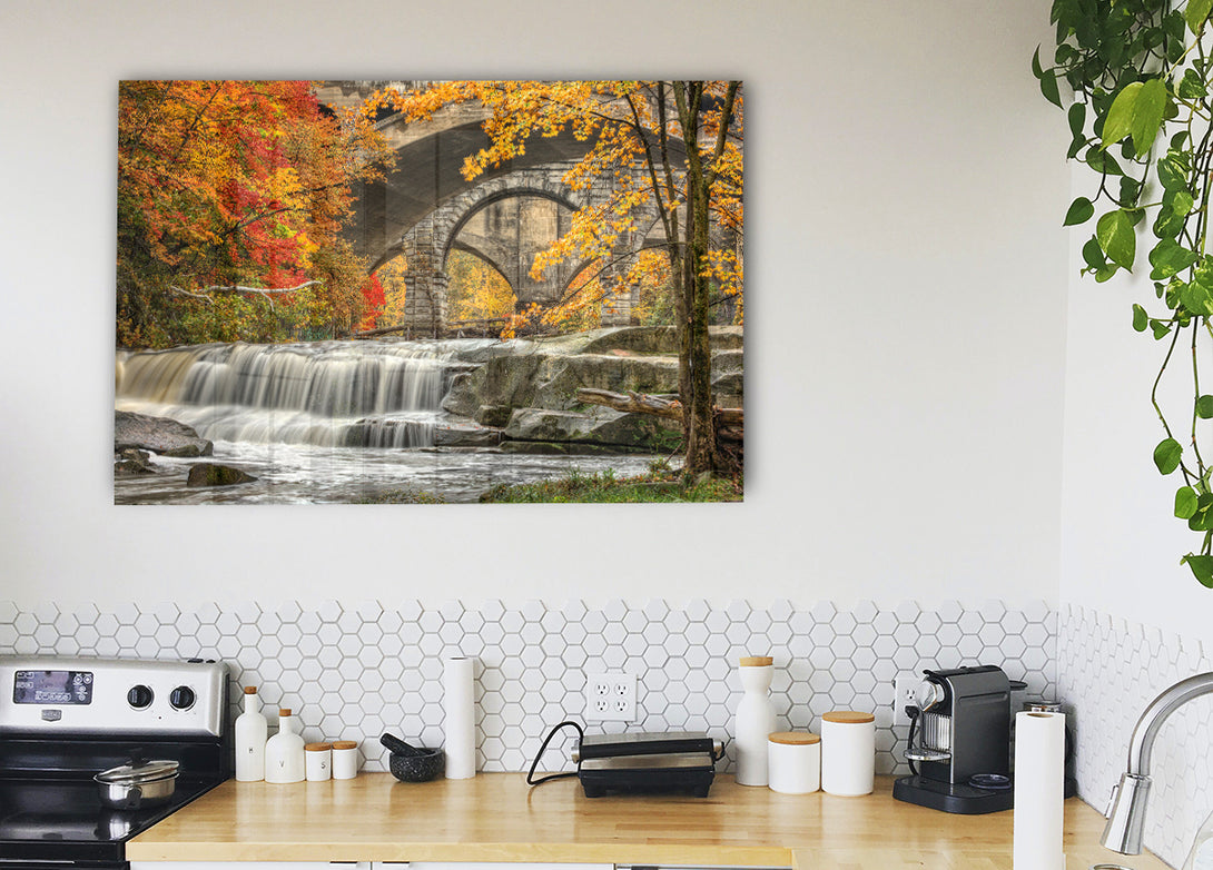 Bridge In The Forest acrylic print, UV printed onto 5mm thick acrylic glass. Comes with everything you need to hang on your wall.