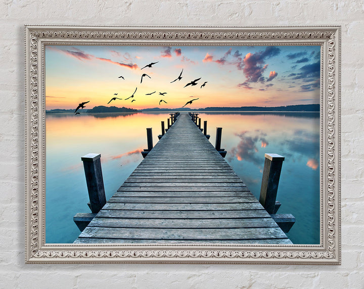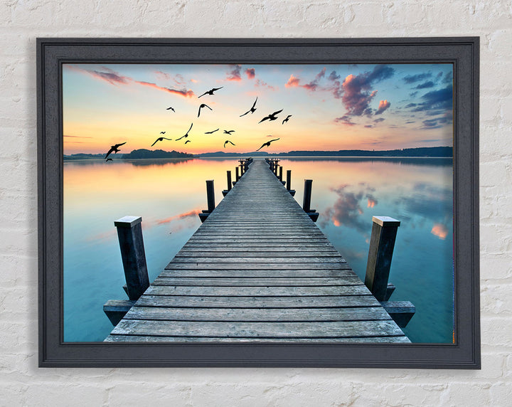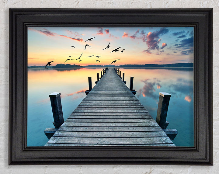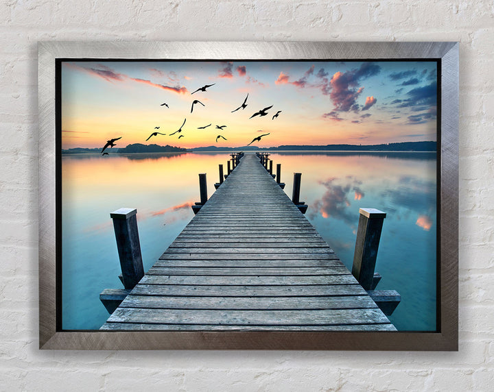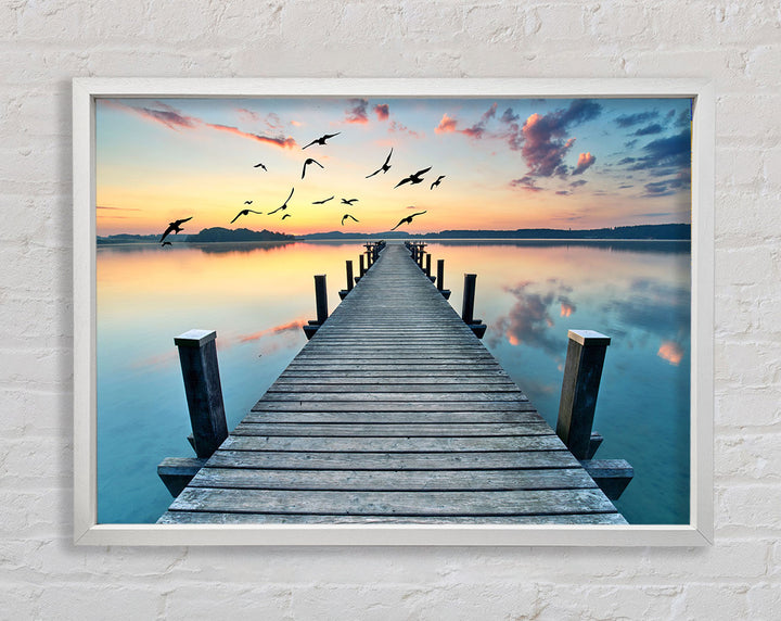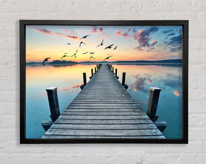 Transform your space with the serene beauty of the "Bridge into the Lake and Seagulls" framed art. This stunning framed print captures a peaceful scene of a bridge leading into a tranquil lake, with seagulls gracefully flying above. Available in six sizes, from small to oversized, it fits perfectly in any room. Choose from a variety of colors to match your decor. Handmade in the United Kingdom, each piece is crafted with care and attention to detail. Ready to hang, this framed art brings a touch of nature's calmness and elegance to your home, making it a perfect addition to your living room, bedroom, or office.