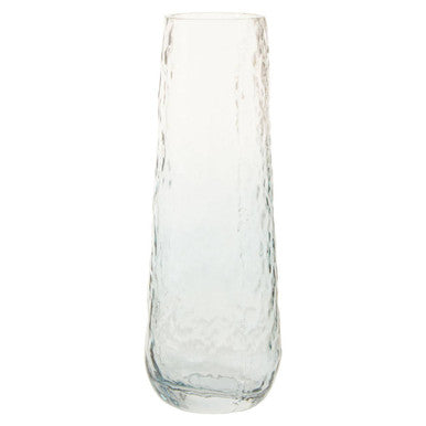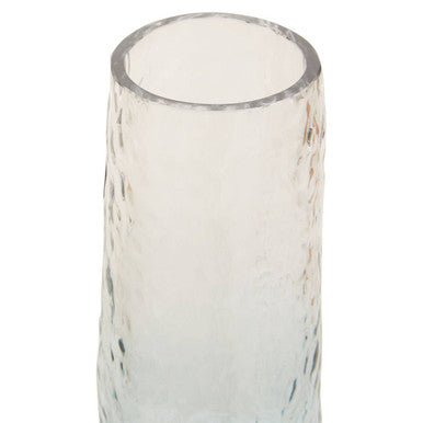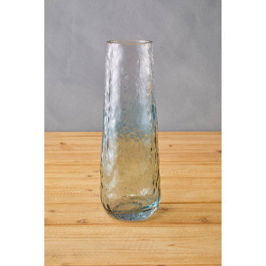 The Brock large vase features elegant craftsmanship with a minimalist profile. The blue colour fades into transparency in a smooth gradient that adds style. The slender profile and textured surface enhance the visual appeal.