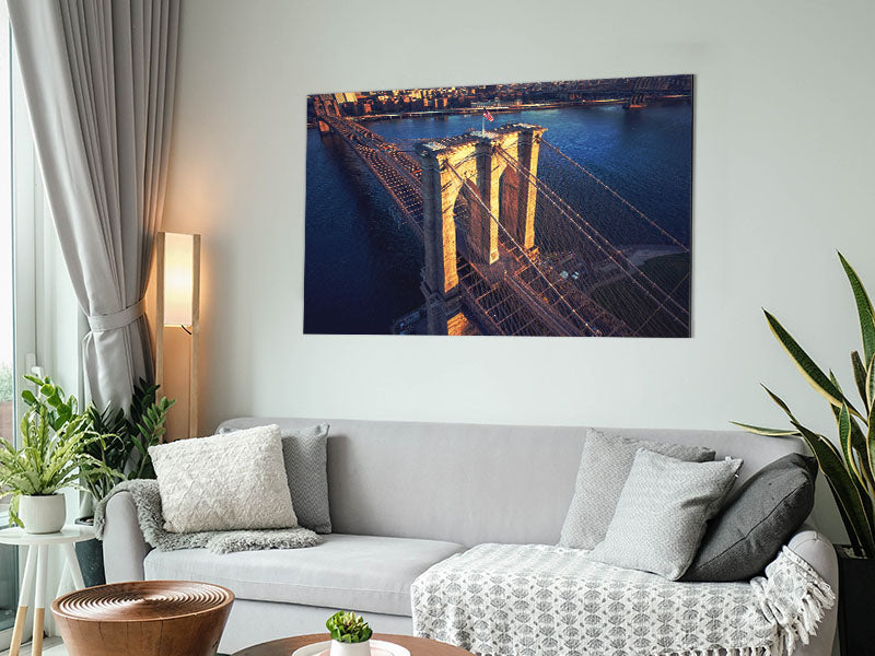 Brooklyn Bridge Above Printed on brushed aluminium dibond. A modern way to display art and easy to maintain.