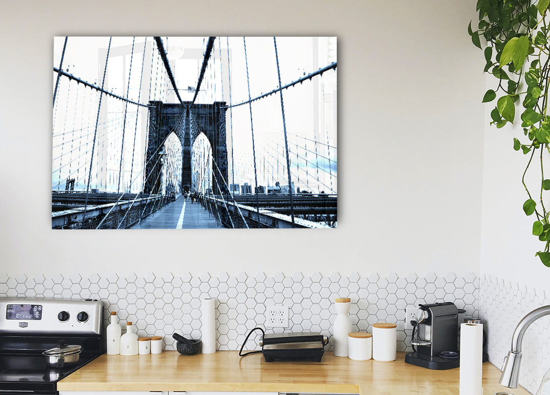 Brooklyn Bridge Blue acrylic print, UV printed onto 5mm thick acrylic glass. Comes with everything you need to hang on your wall.