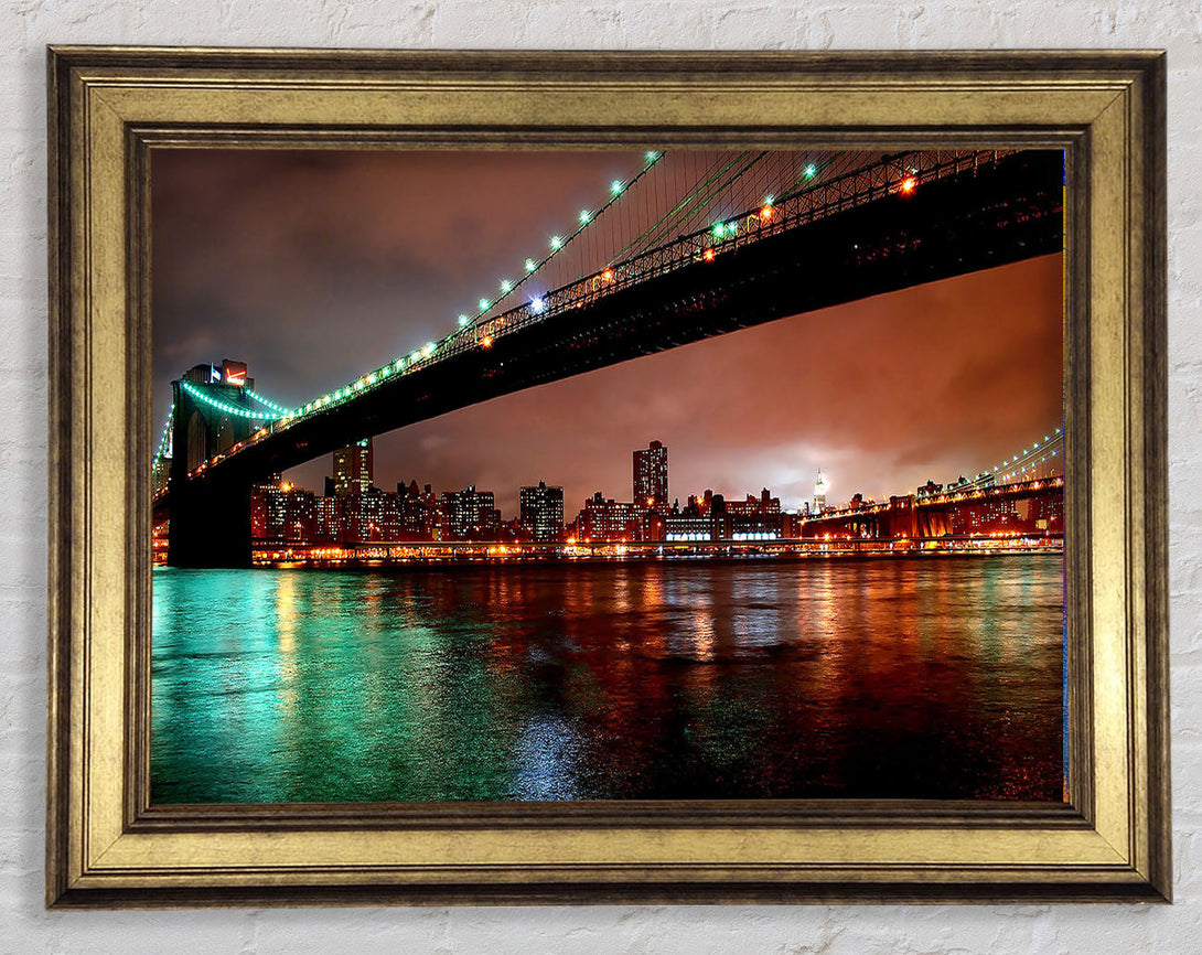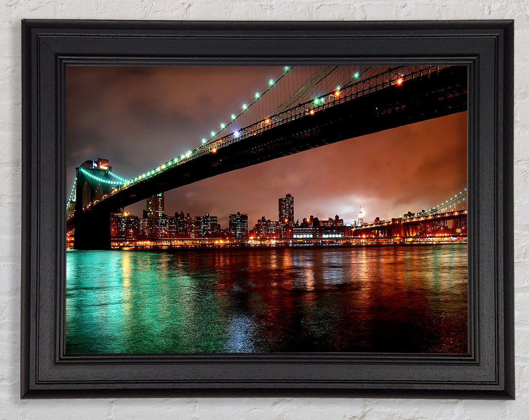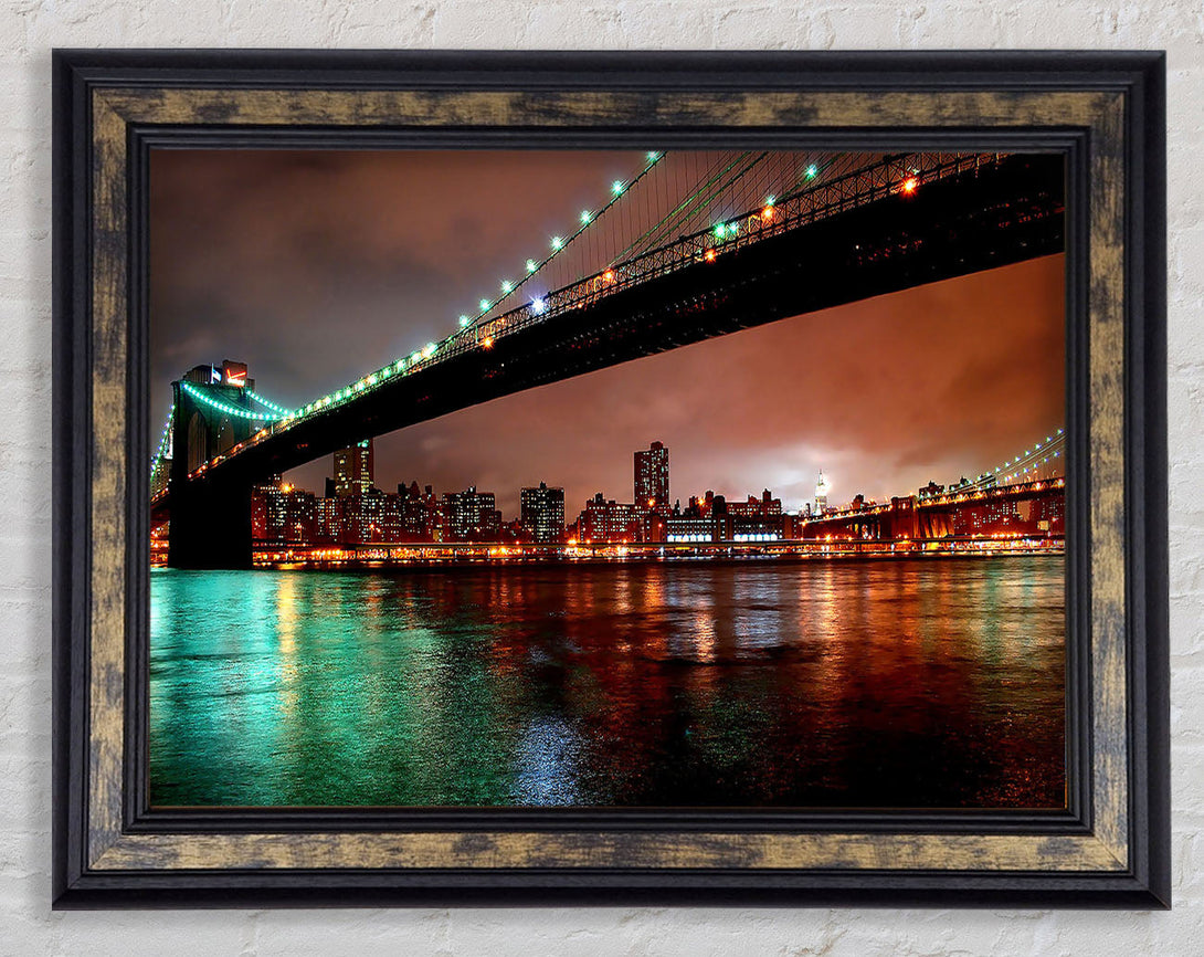 Brooklyn Bridge New York At Night Framed Print