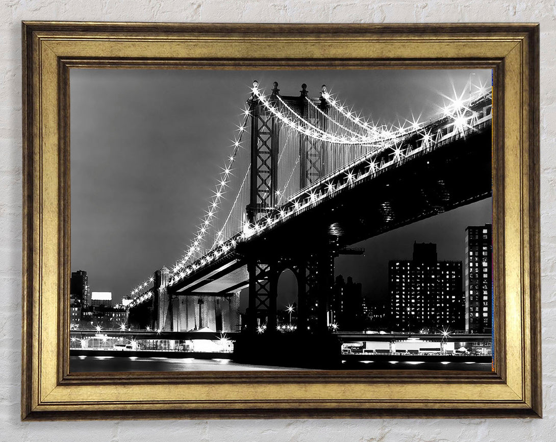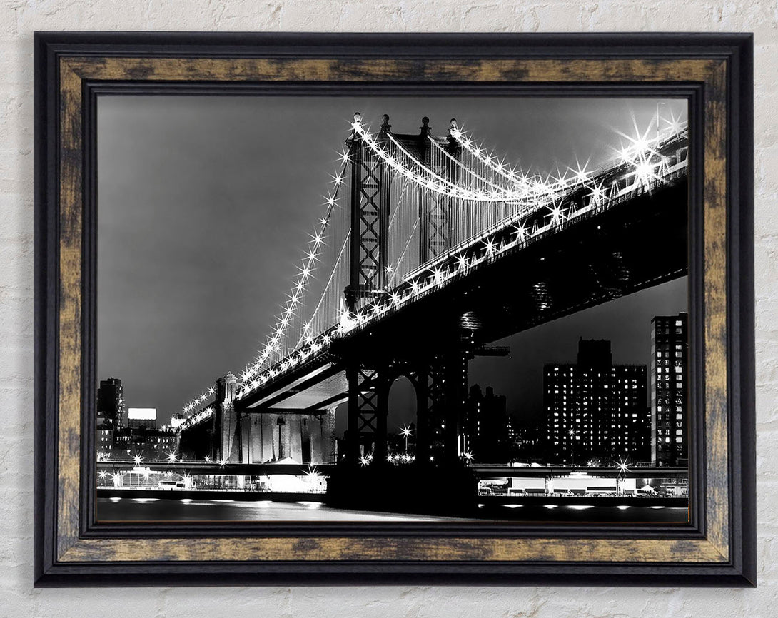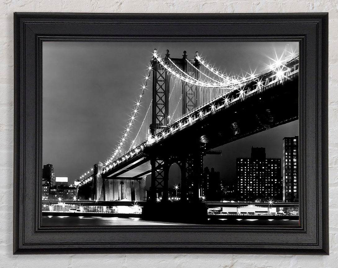 Brooklyn Bridge Night Lights B n W Framed Print