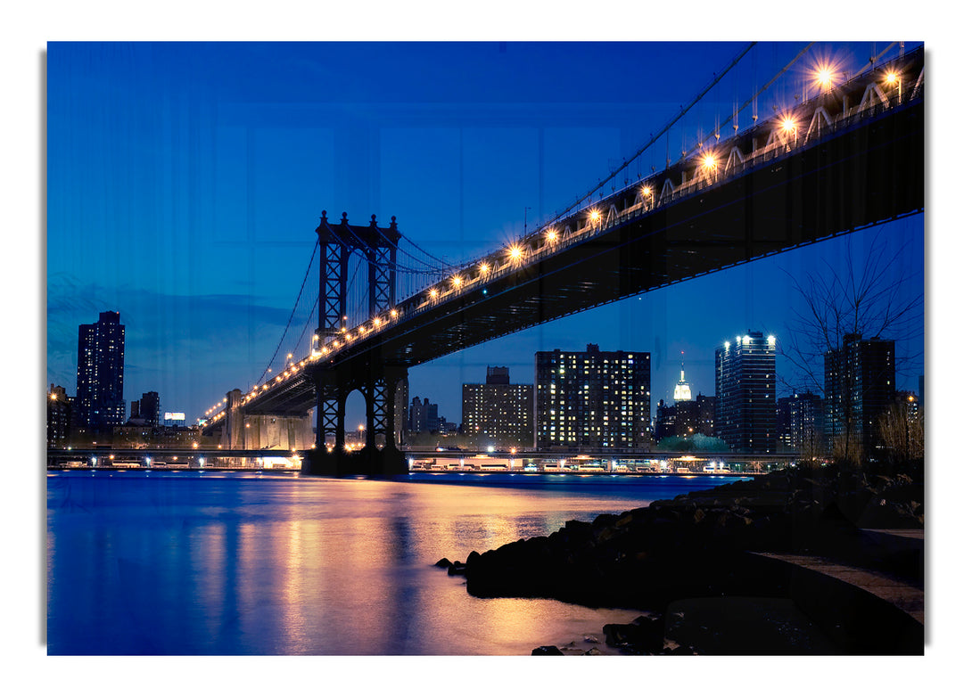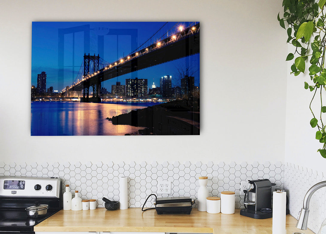 Brooklyn Bridge Peach Glow acrylic print, UV printed onto 5mm thick acrylic glass. Comes with everything you need to hang on your wall.