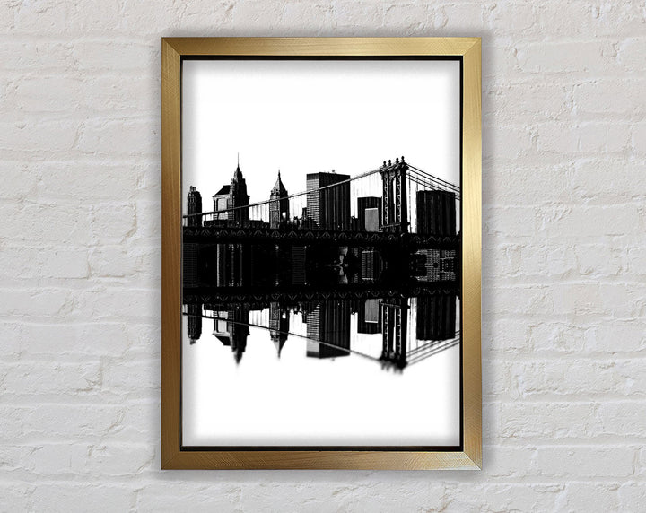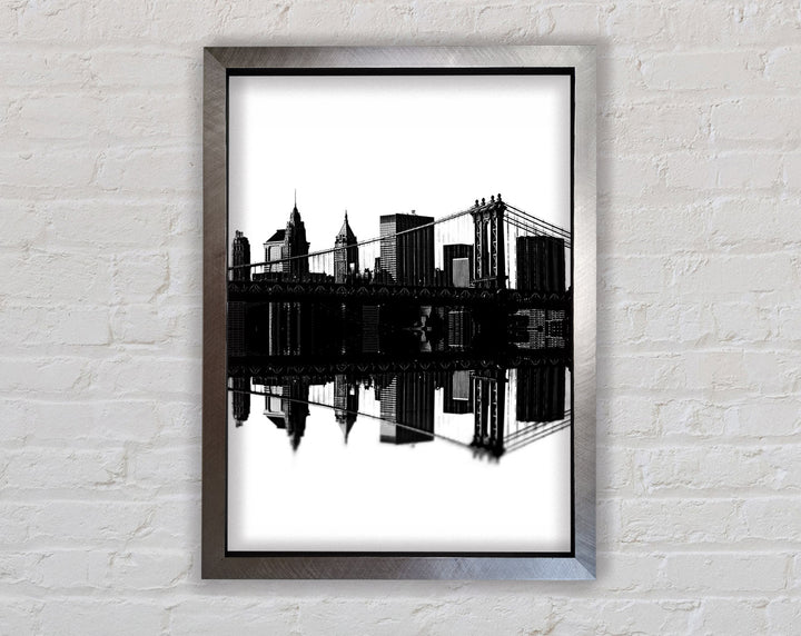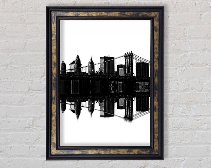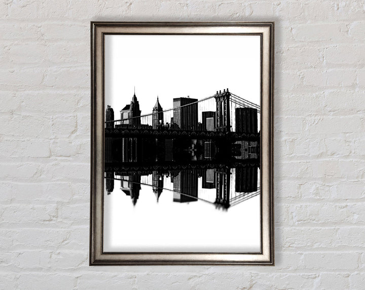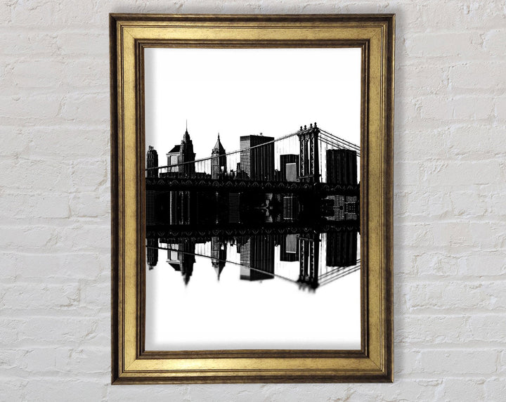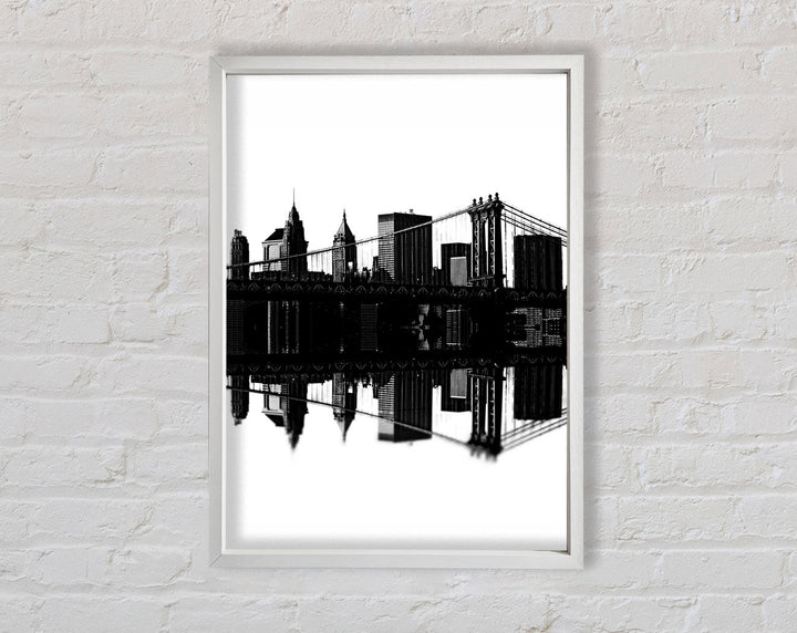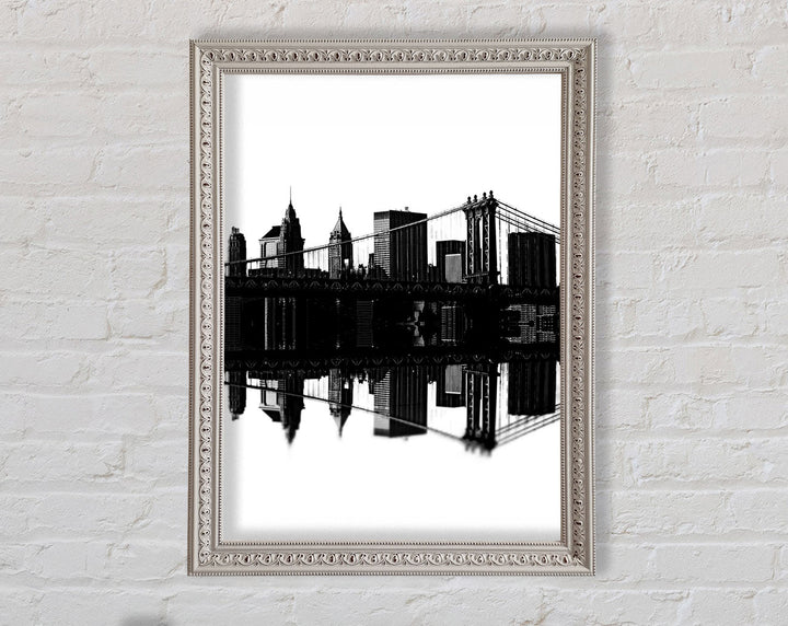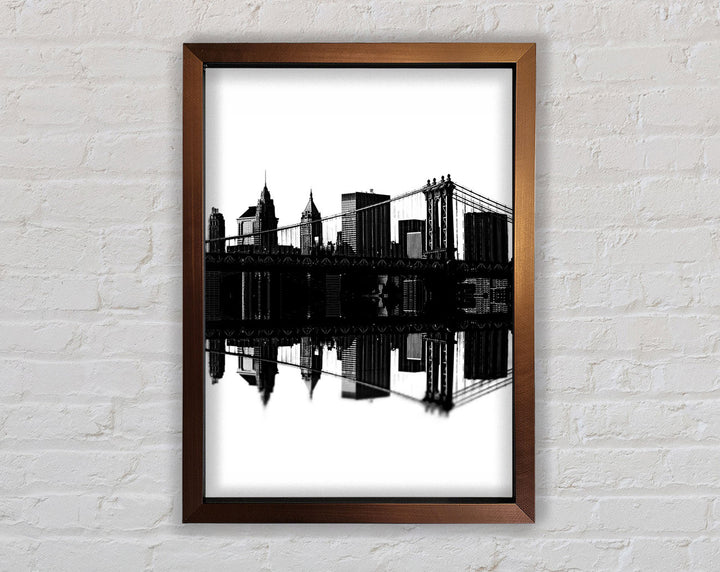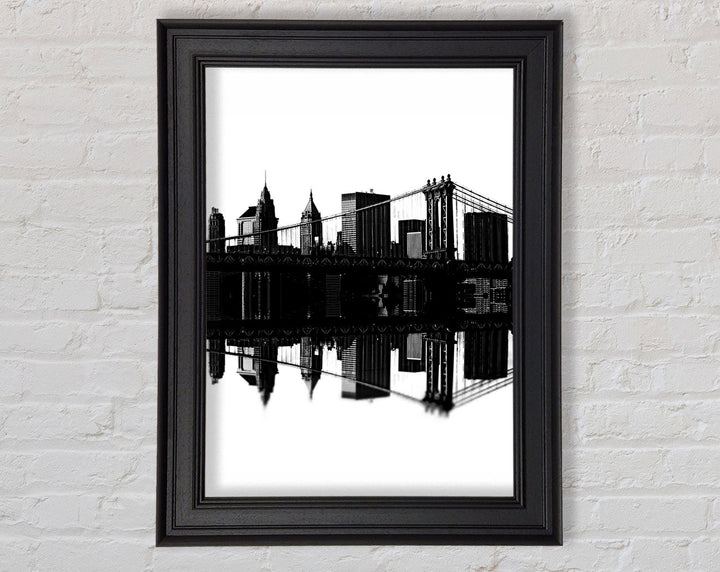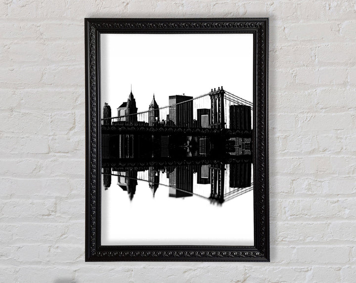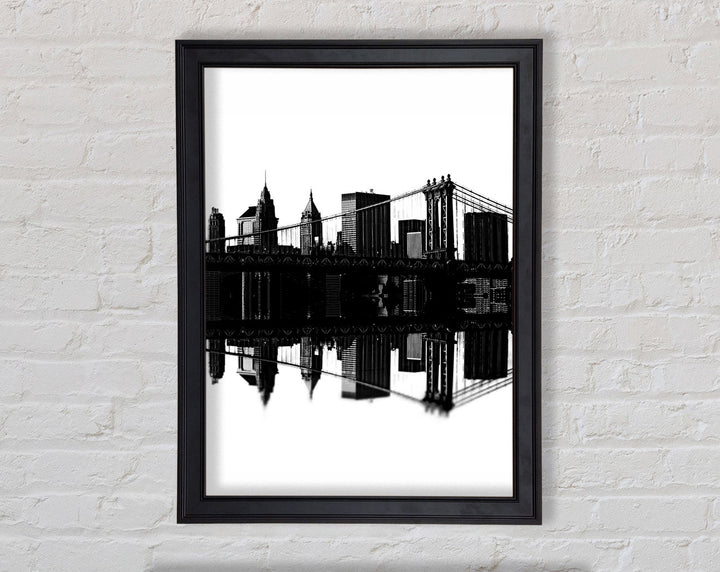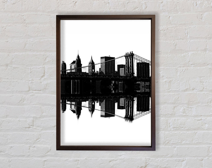 Capture the timeless beauty of New York City with the Brooklyn Bridge Reflections B n W Framed Print. This stunning piece of framed art showcases the iconic Brooklyn Bridge reflected in the water, all in striking black and white. Available in six sizes, from small to oversized, this print can fit any space in your home or office. Choose from a variety of frame colors to match your decor. Handmade in the United Kingdom, each piece is crafted with meticulous attention to detail and comes ready to hang, making it a perfect addition to your art collection. Enhance your space with a touch of elegance and history.