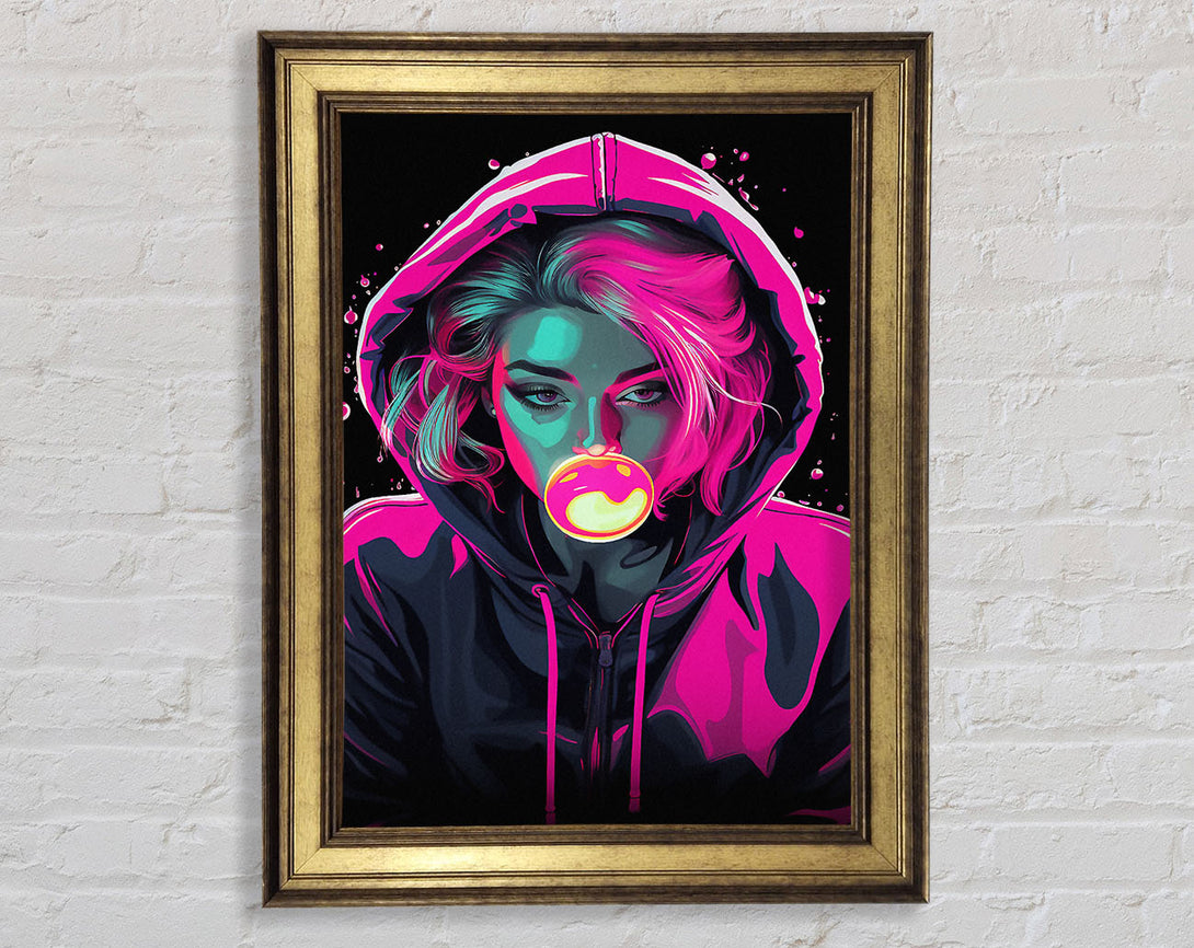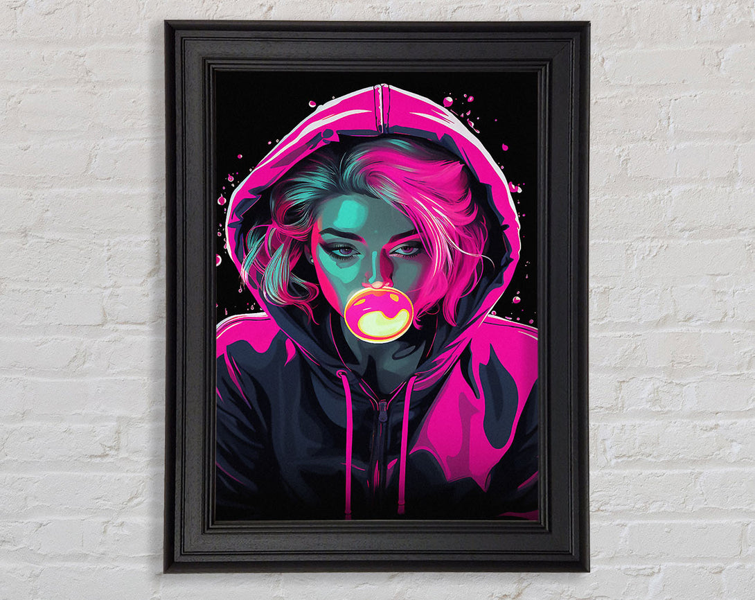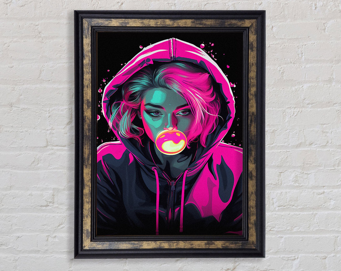 Bublegum Girl Hoodie Cyberpunk Girl Framed Print