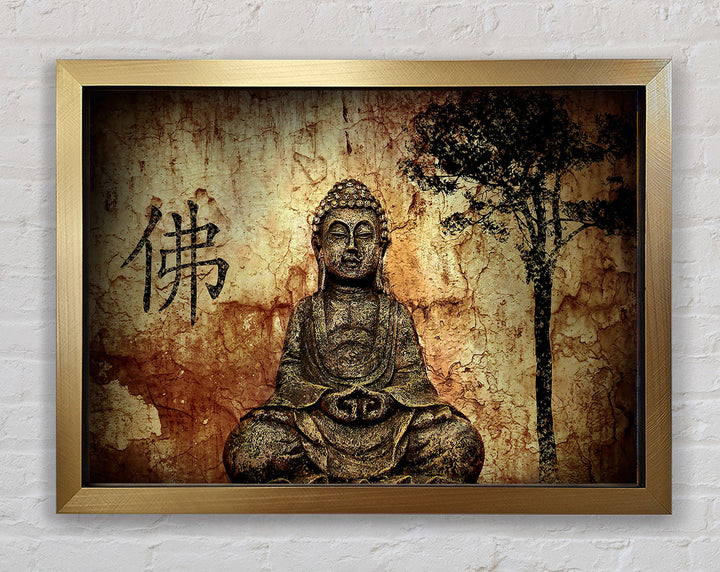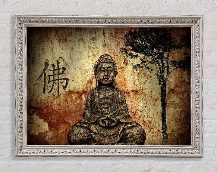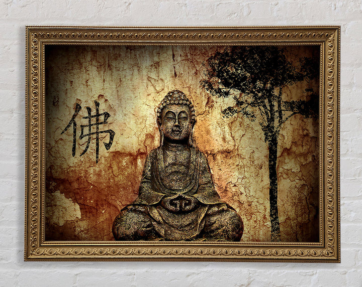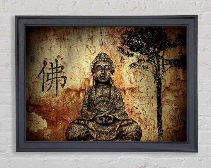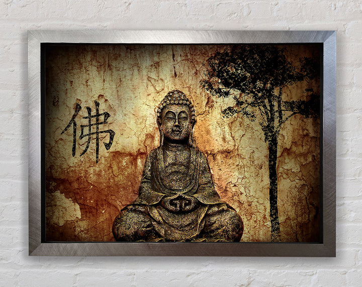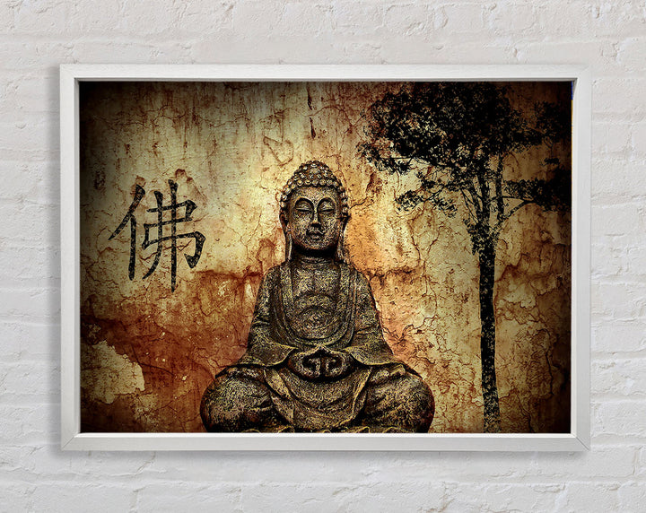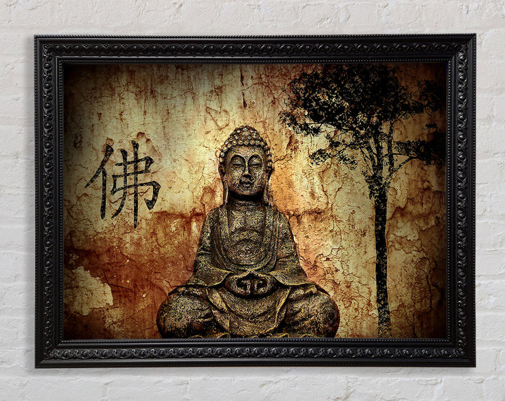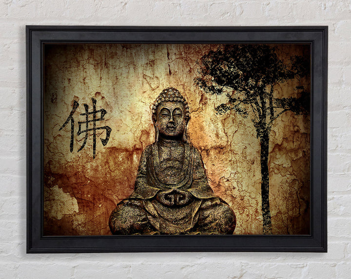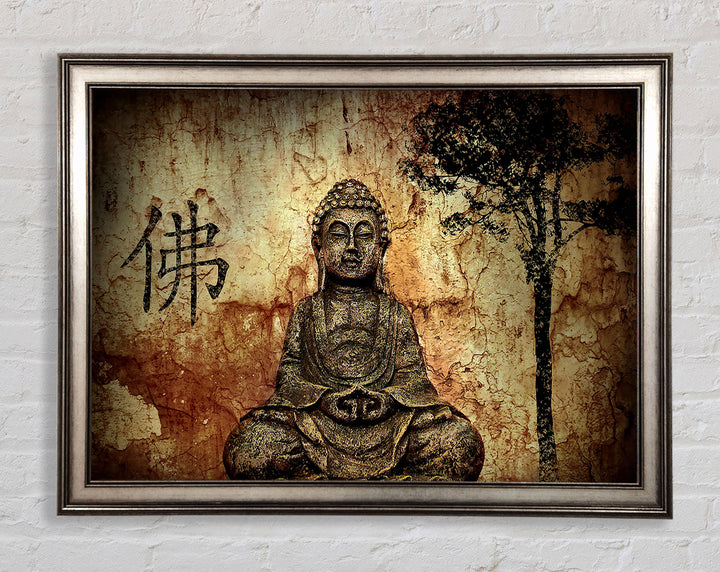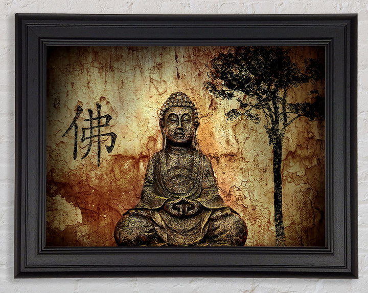 Buddha Retro Tree Framed Print