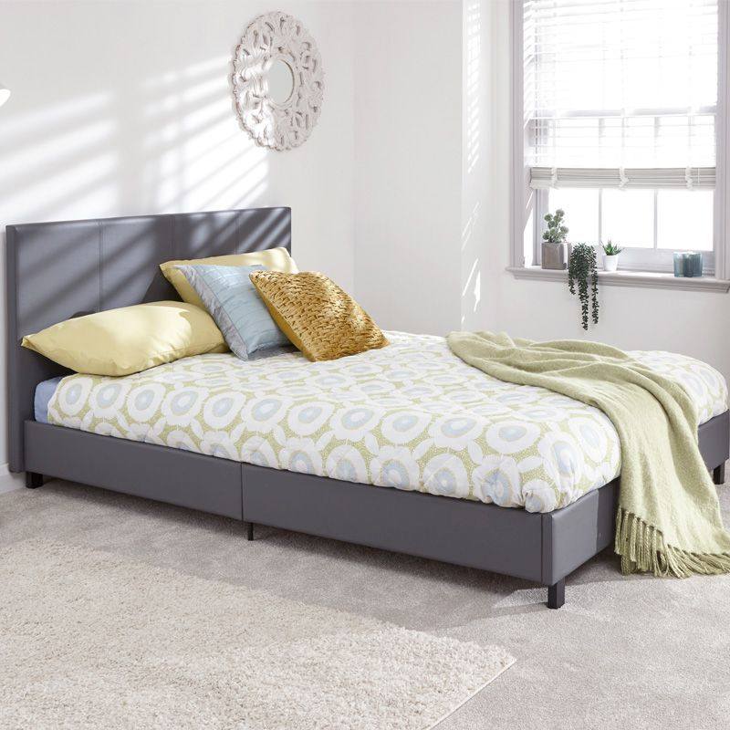 Bugi King Size Bed Faux Leather Grey 5 x 7ft