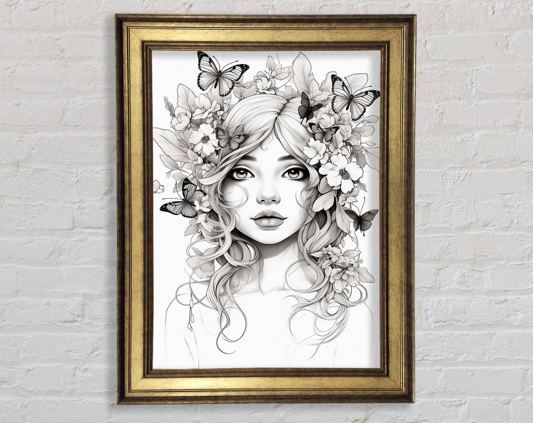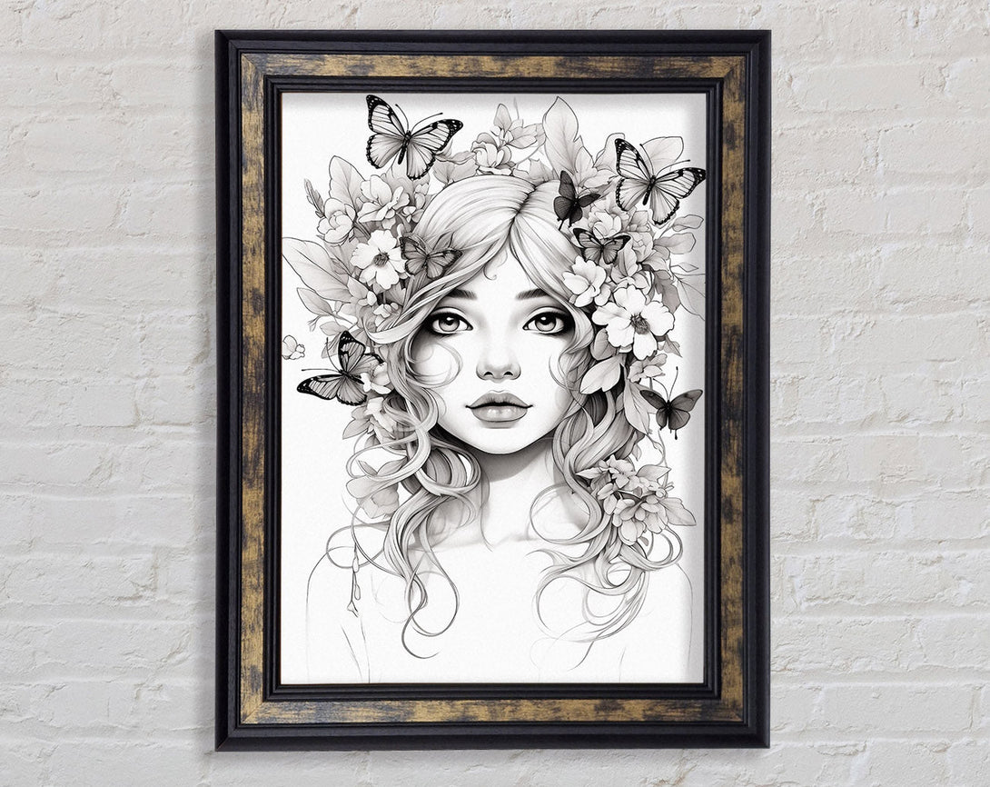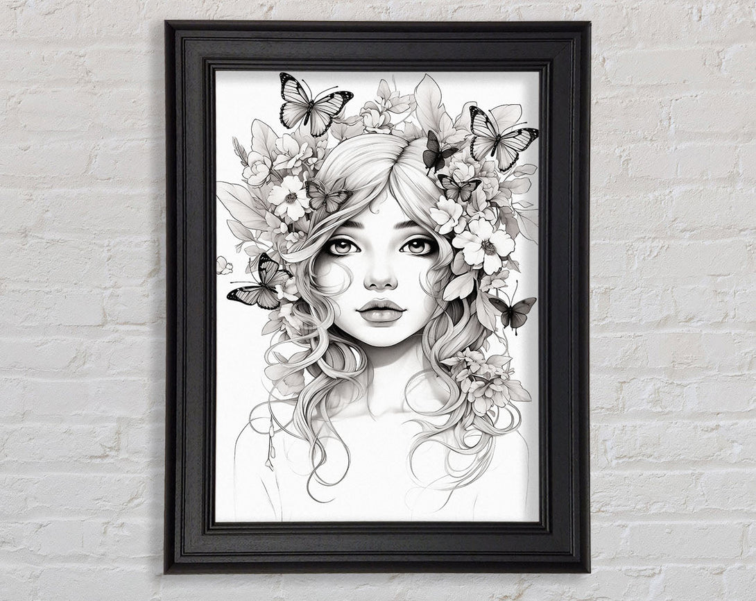Butterfly And Flower Hair Fairy Girl Framed Print