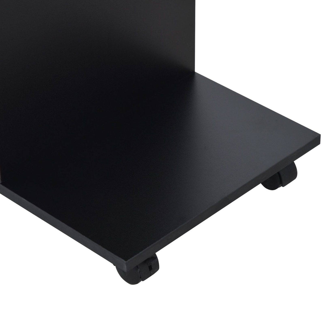 C-Shape End Table Unique Storage Unit w/ 2 Shelves 4 Wheels Freestanding Home Office Furniture Cabinet Square Studio Black