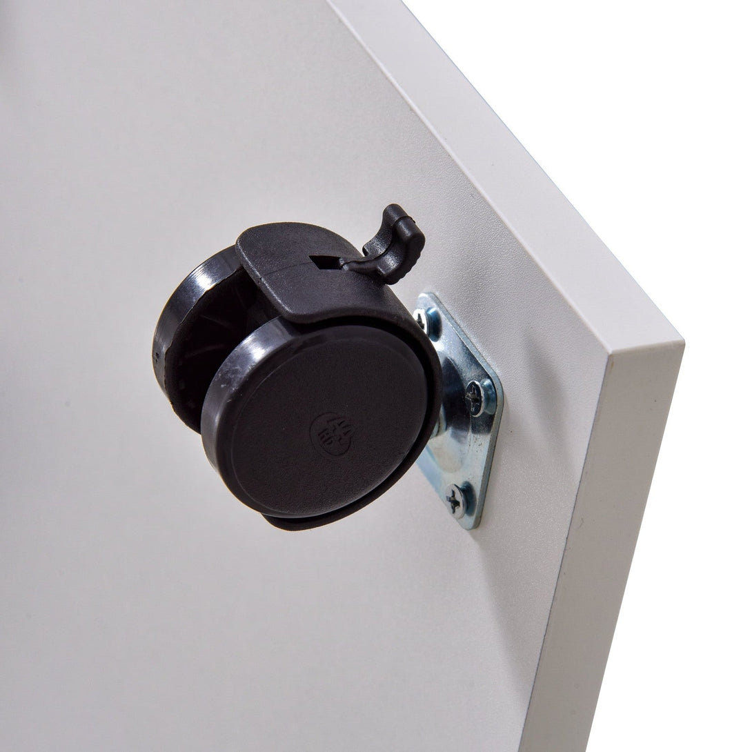Let the unique design of this 'C' table, from HOMOM, lead the way for keeping your home tidy. Made from solid particle board, this piece is very durable and reliable for everyday use, featuring two open shelves for storage and display. The open end can be used as both extra storage and slotting into spots to extend the surface space, with the four wheels allowing it to move easily; two can be locked to keep the table in place. It's finished with a melamine coating, making it smooth, protected against light markings and easy to clean.