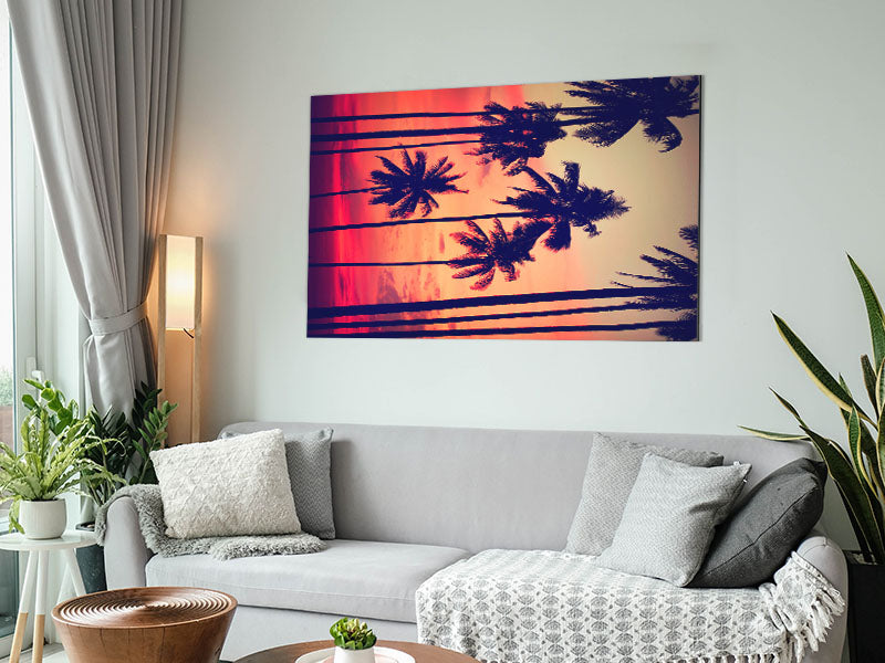 Californian Palm Trees Printed on brushed aluminium dibond. A modern way to display art and easy to maintain.