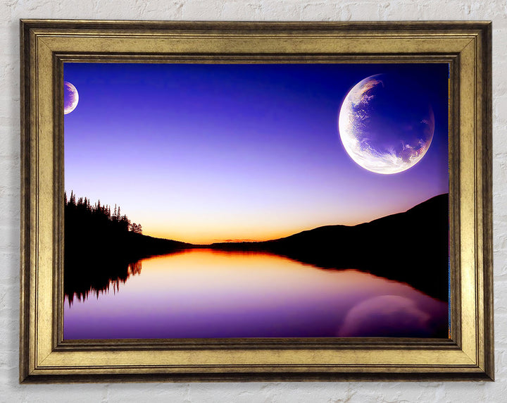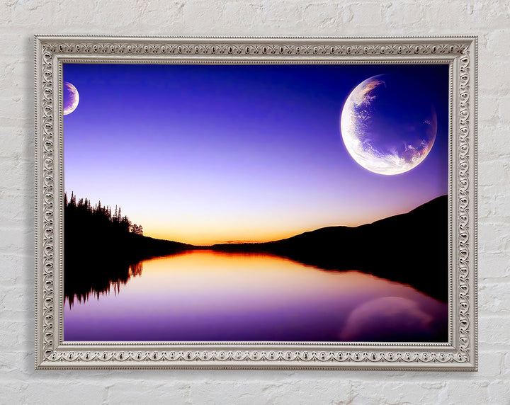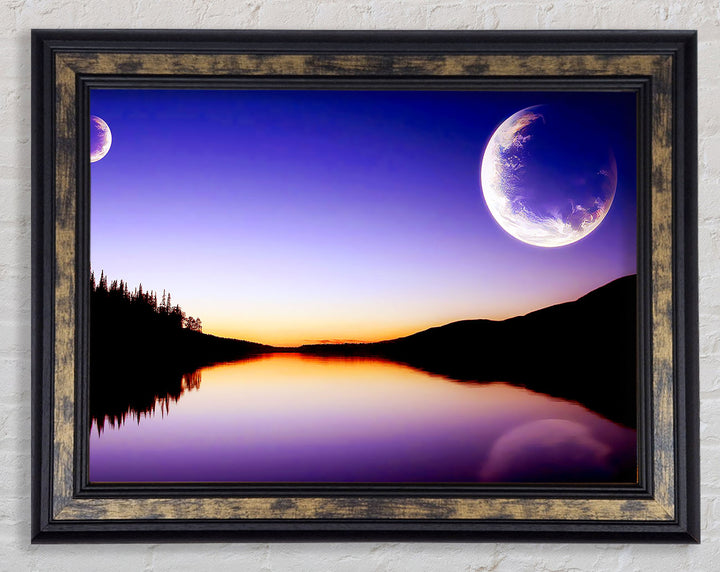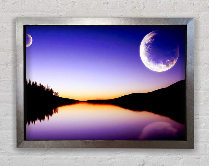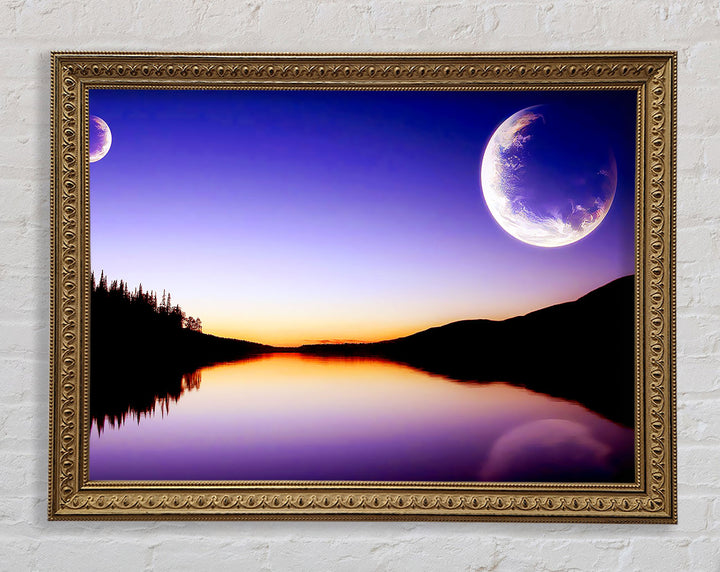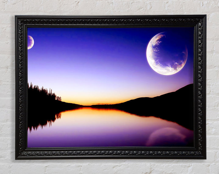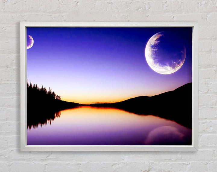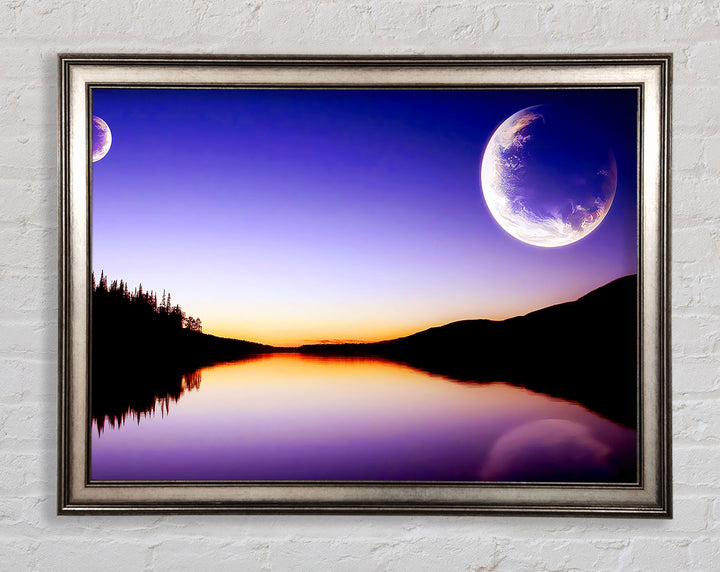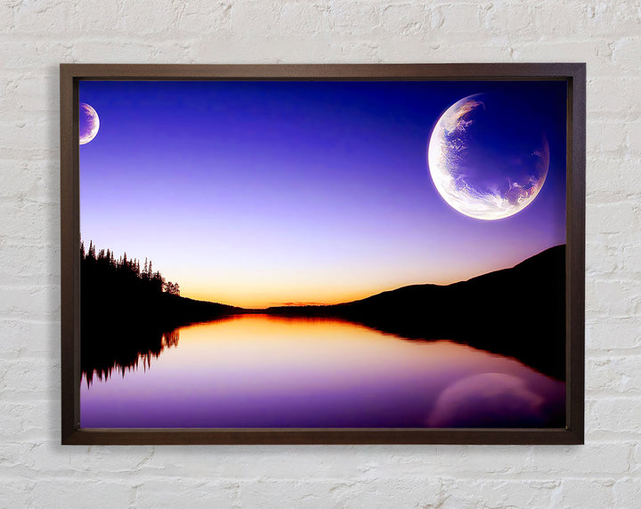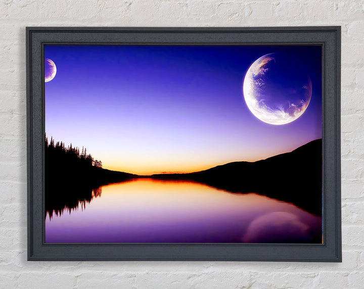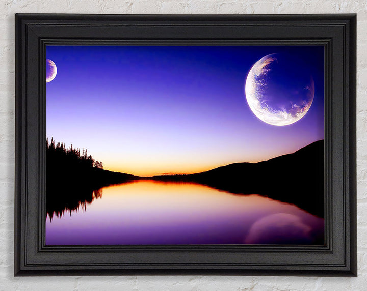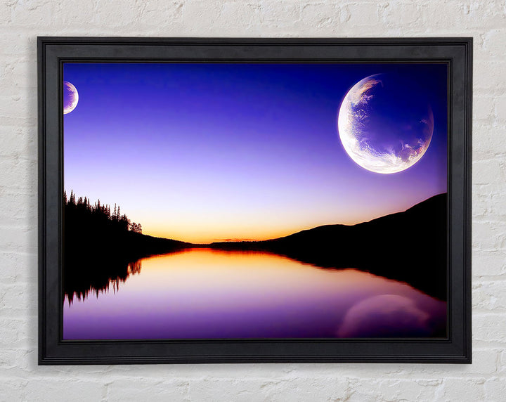 Experience the tranquility of another world with our Calm Lake In Another World Purple Framed Print. This stunning piece of framed art captures the serene beauty of a calm lake set against a dreamy, otherworldly backdrop. Available in six different sizes from small to oversized, it can fit perfectly in any space, whether it's your living room, bedroom, or office.