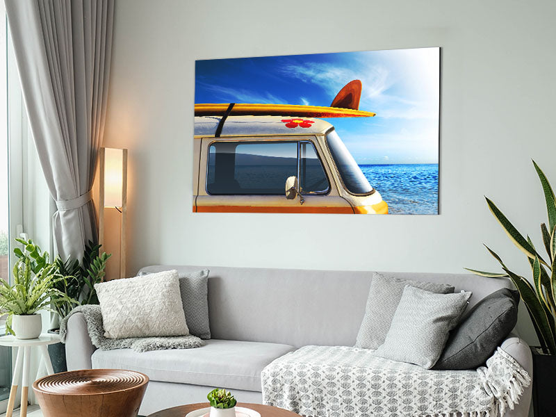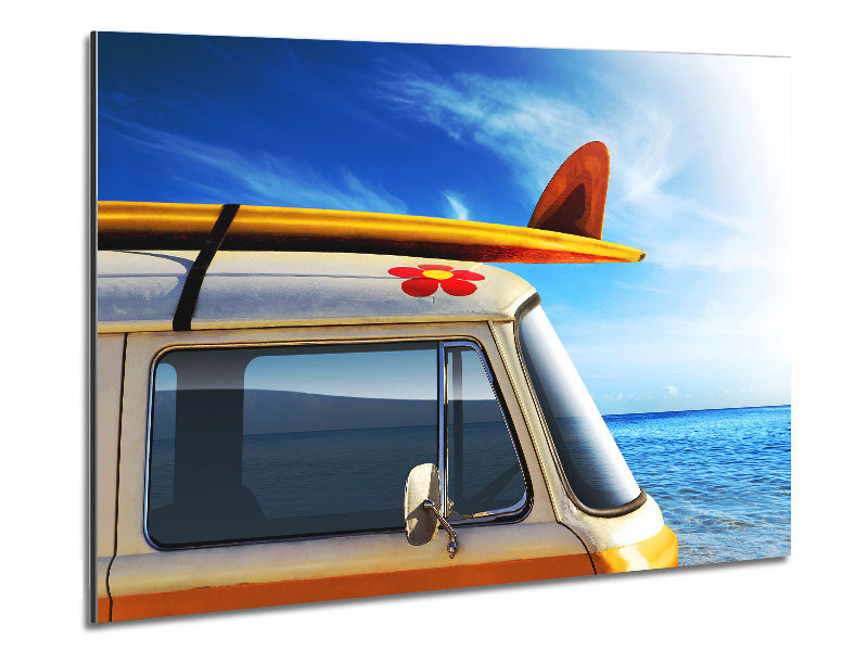 Camper Van Ready For The Waves Printed on brushed aluminium dibond. A modern way to display art and easy to maintain.