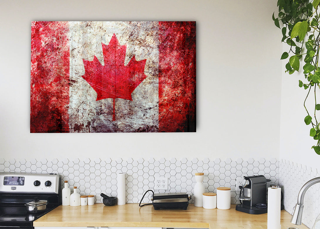 Canada Flag Grunge acrylic print, UV printed onto 5mm thick acrylic glass. Comes with everything you need to hang on your wall.