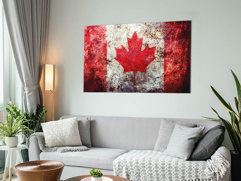 Canada Flag Grunge Printed on brushed aluminium dibond. A modern way to display art and easy to maintain.