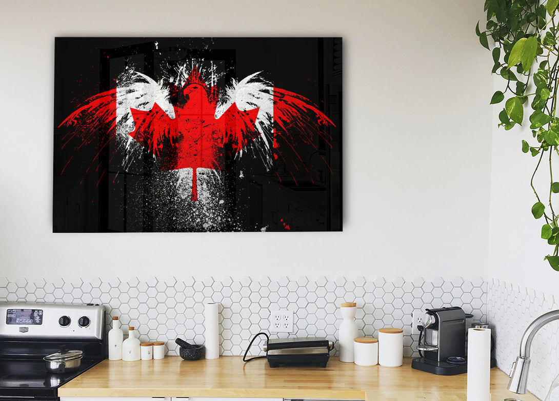 Canadian Eagle Flag acrylic print, UV printed onto 5mm thick acrylic glass. Comes with everything you need to hang on your wall.