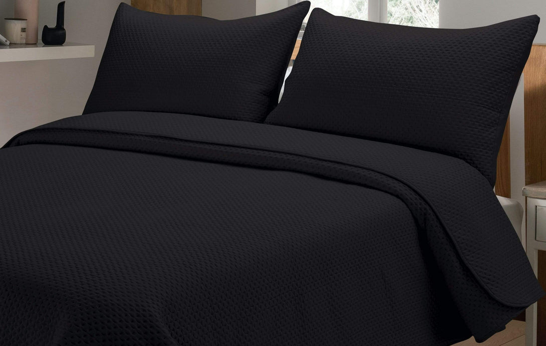 The Capri Bedspread Set includes one quilted bedspread (240 x 260 cm) and two pillow shams (50 x 75 cm). Please note that the pillow shams are not filled.