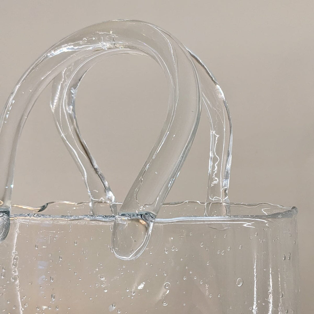 The Carina Bubbled Glass Decorative Handbag Vase is a unique and playful addition to your décor.