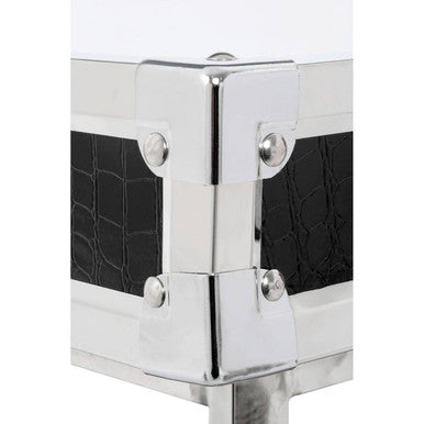 The elegant style of coffee table is made from strong, reliable MDF and stainless steel, while chic mirrored finish with crocodile black leather effect detail accentuate the tables appeal.The sleek and smooth mirrored top surface is ideal for placing drinks and snacks making your home your own.