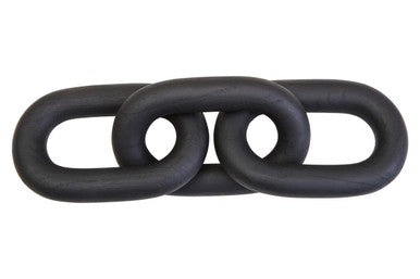 This three link black chain is handcrafted by skilled artisans from natural wood, showcasing the care and individual touch of the craftsmanship. Its interconnected form and organic material make it ideal for coffee table styling, adding a charming and tactile element. *Please note that naturally occurring variations may occur in wood colour, texture and grain.
